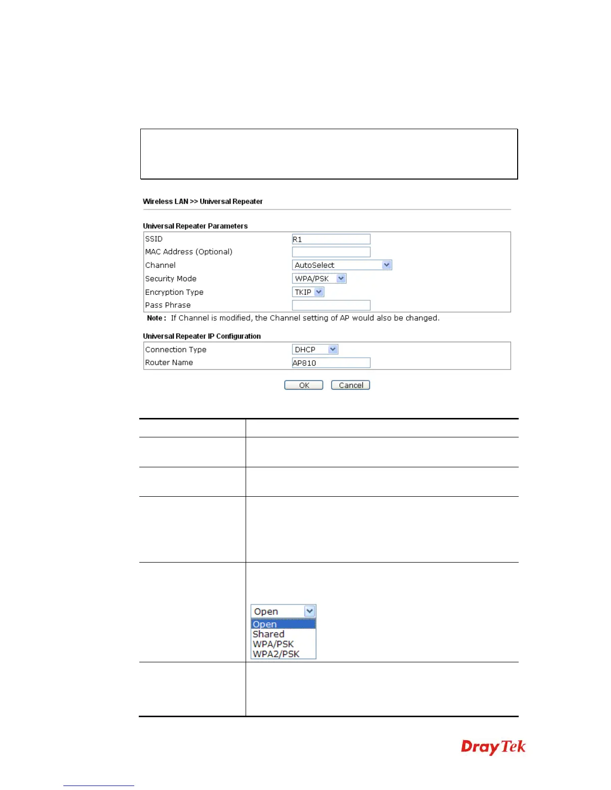 mode will bring up different parameters (e.g., WEP keys, Pass