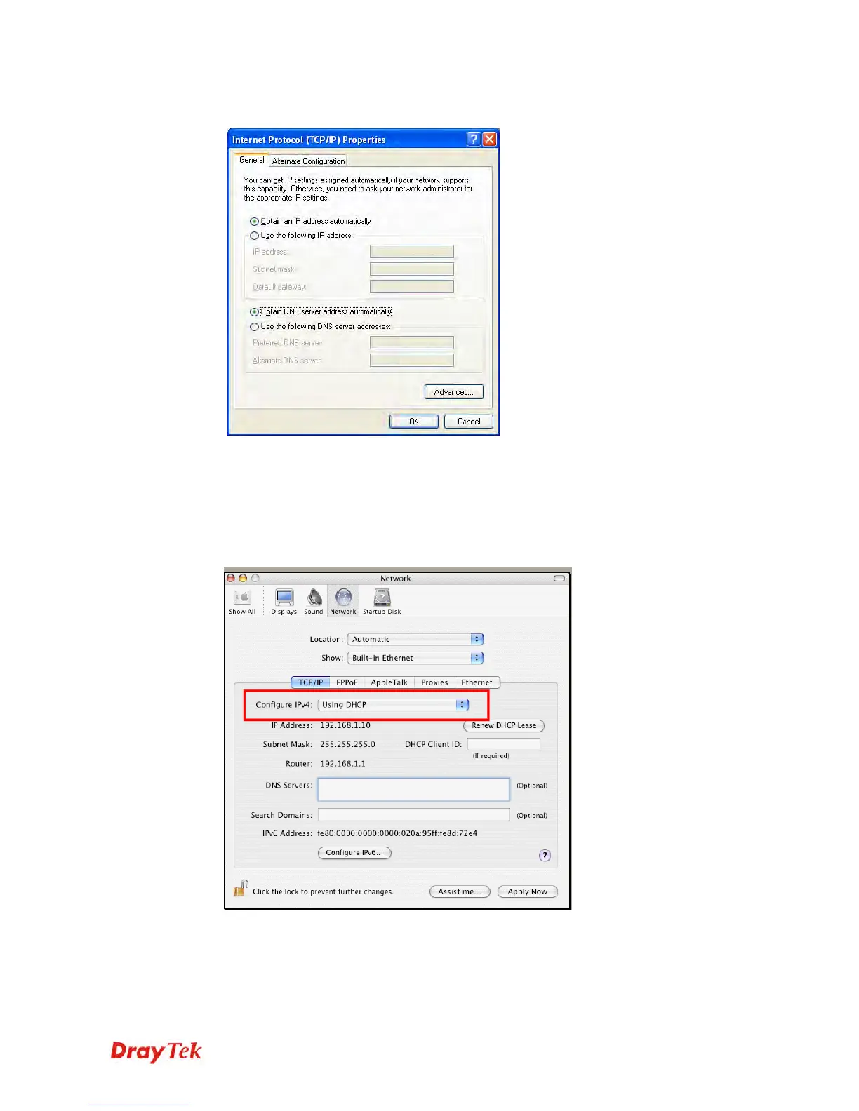 4. Select Obtain an IP address automatically and Obtain DNS server address