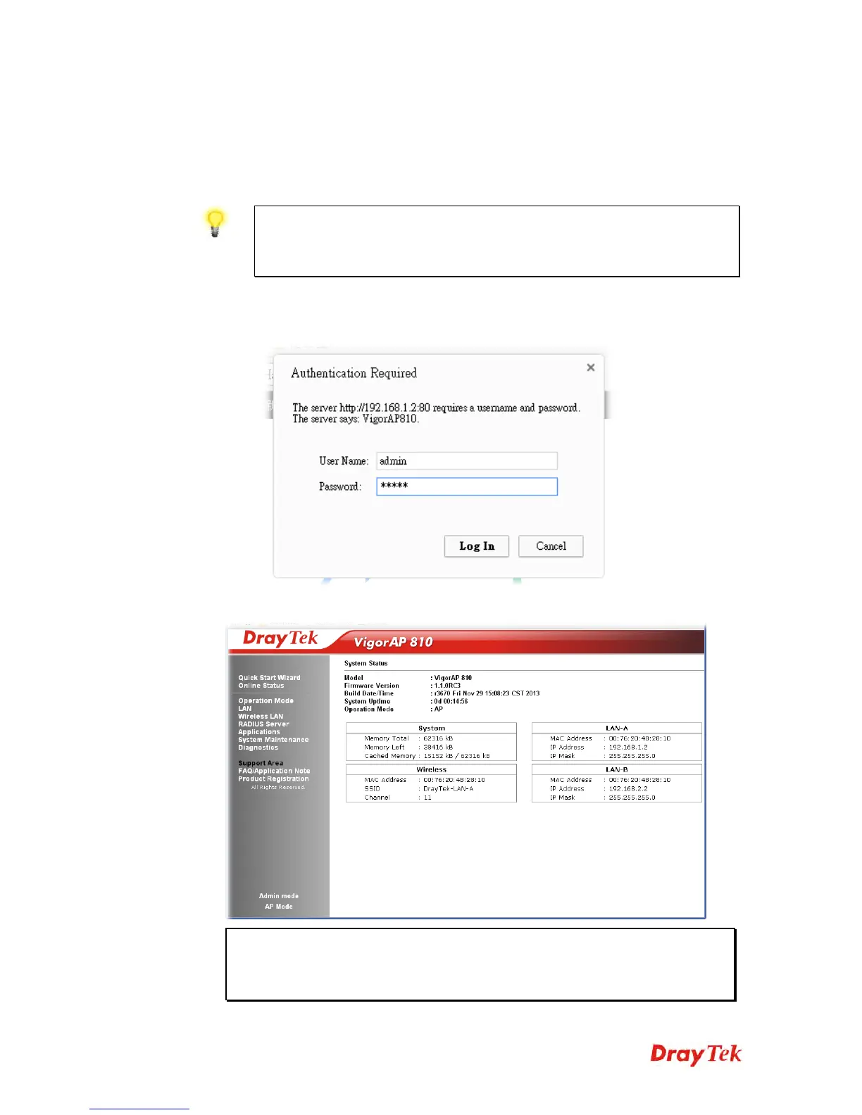 as the default IP address of VigorAP 810 192.168.1.2. For the detailed