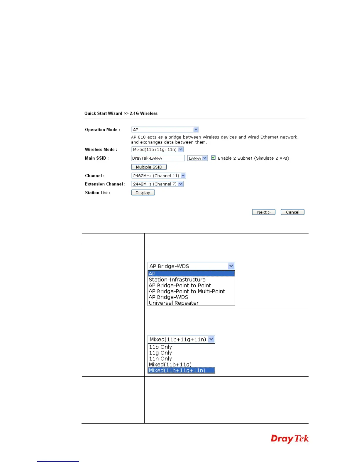 only, Mixed (11b+11g) and Mixed (11b+11g+11n) stations