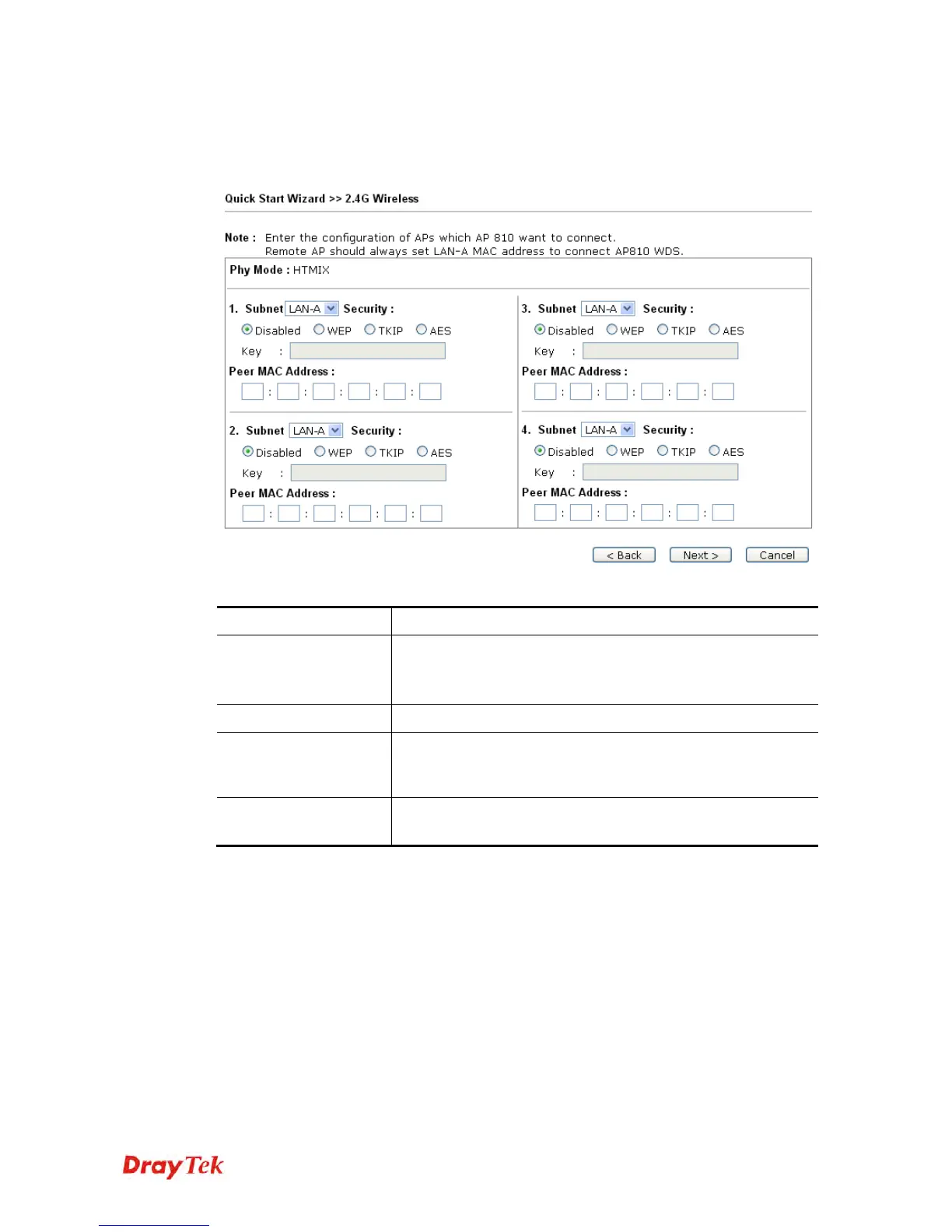 Type the peer MAC address for the access point that VigorAP