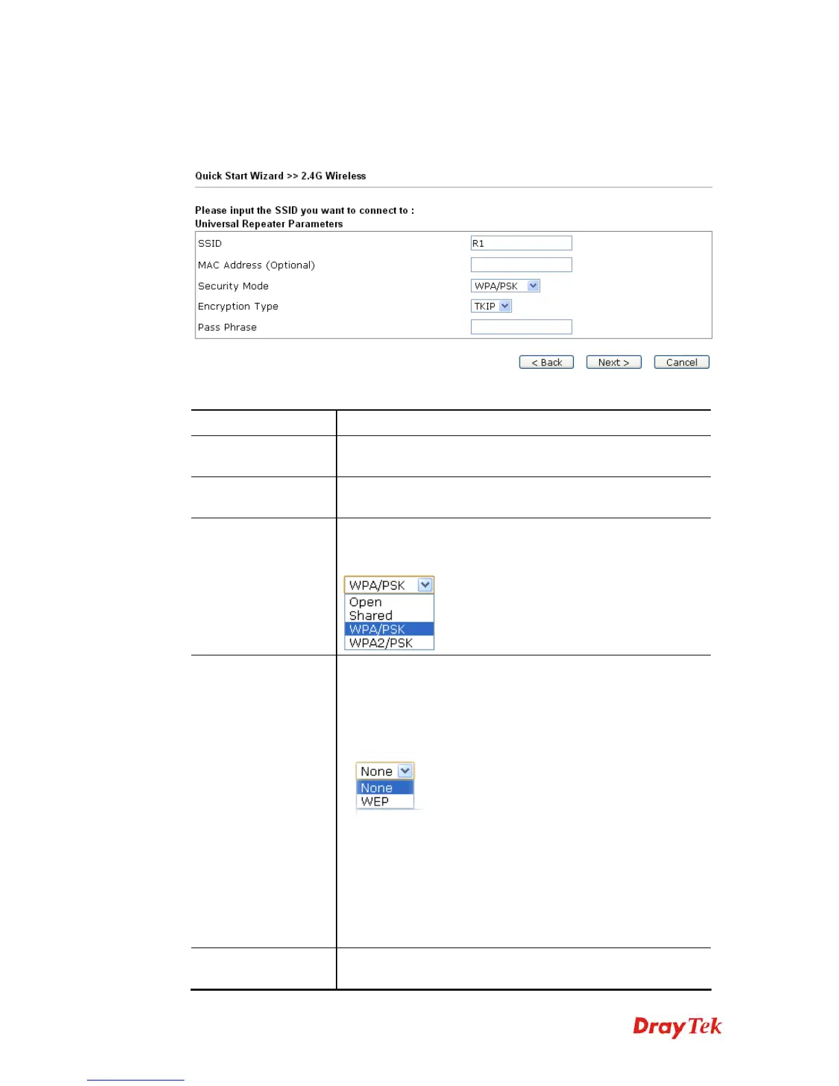 When you choose AP Bridge-Universal Repeater as Operation Mode and click Next, you