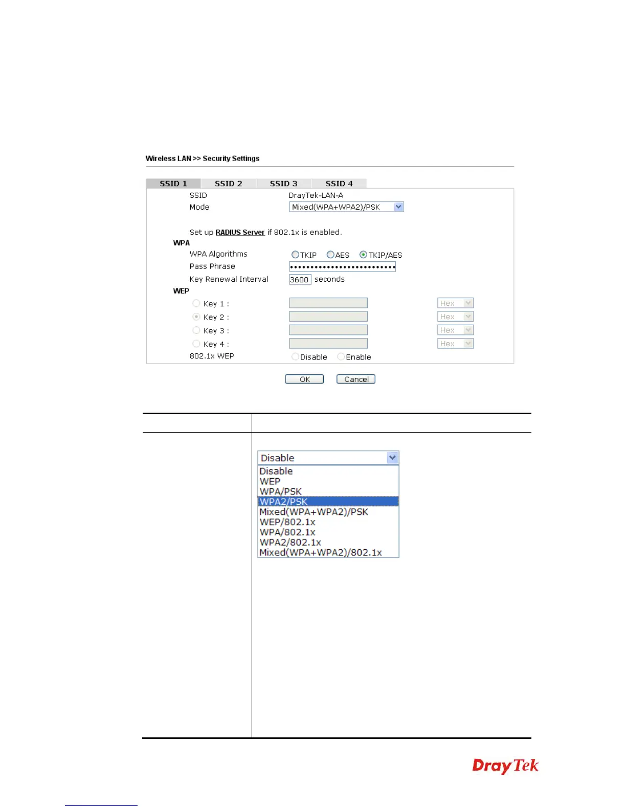 This page allows you to set security with different modes for SSID 1, 2, 3 and 4 respectively.