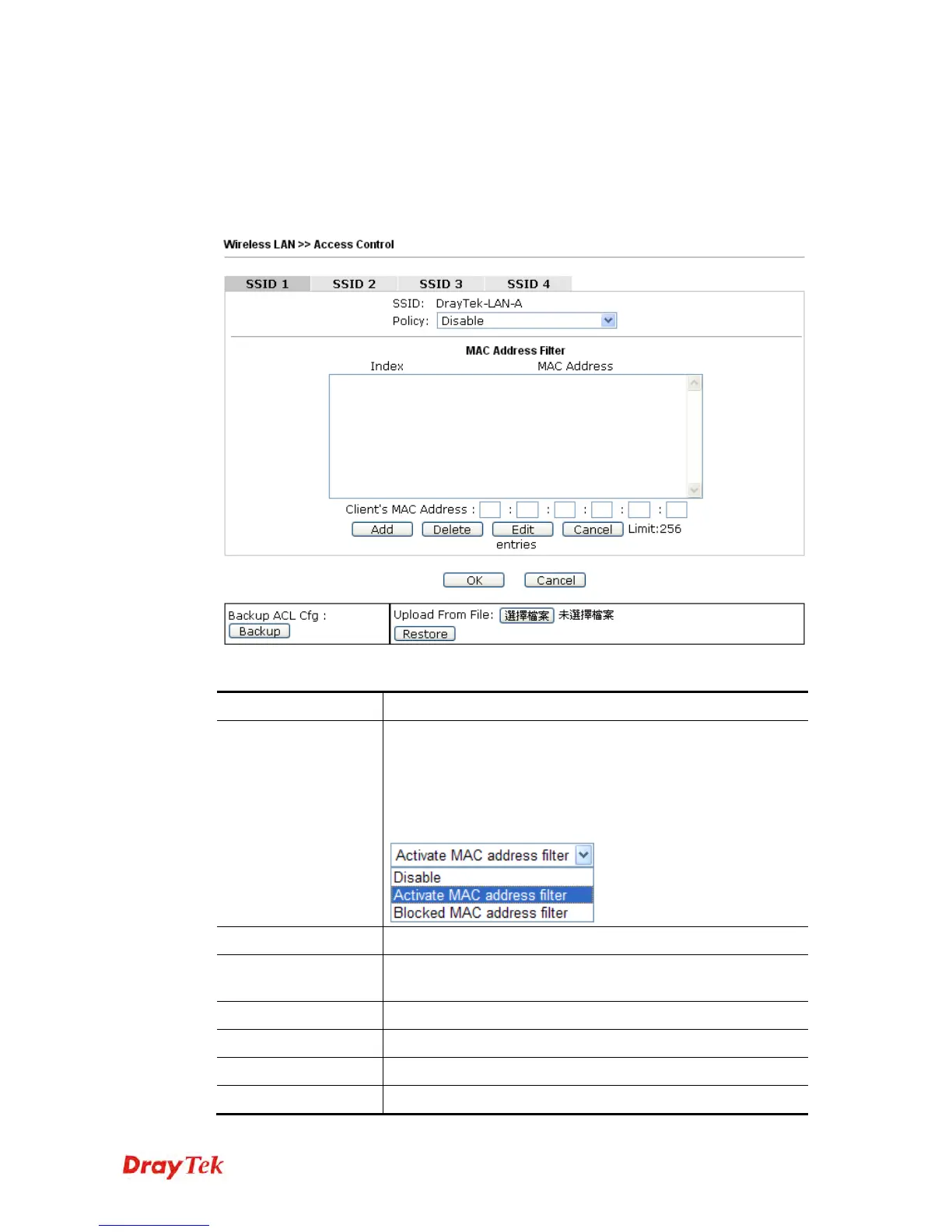 For additional security of wireless access, the Access Control facility allows you to restrict