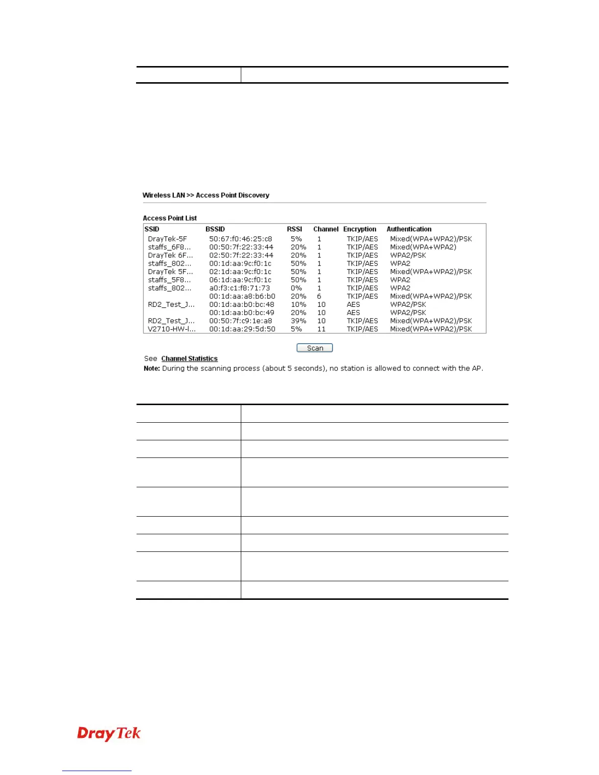 This page is used to scan the existence of the APs on the wireless LAN. Please click Scan to