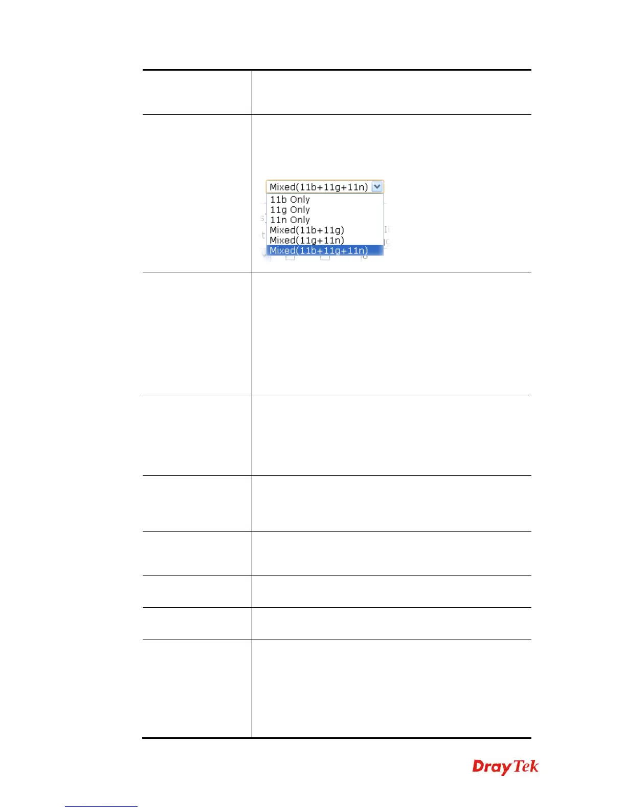11n only, Mixed (11b+11g), Mixed (11g+11n) and Mixed