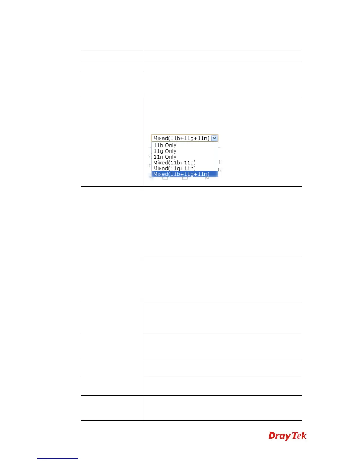 11n only, Mixed (11b+11g), Mixed (11g+11n) and Mixed