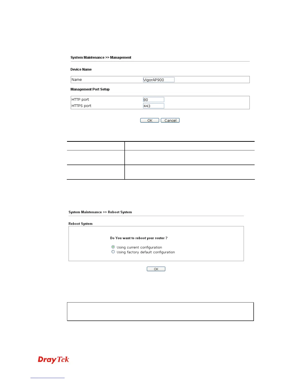 Note: When the system pops up Reboot System web page after you configure web settings,