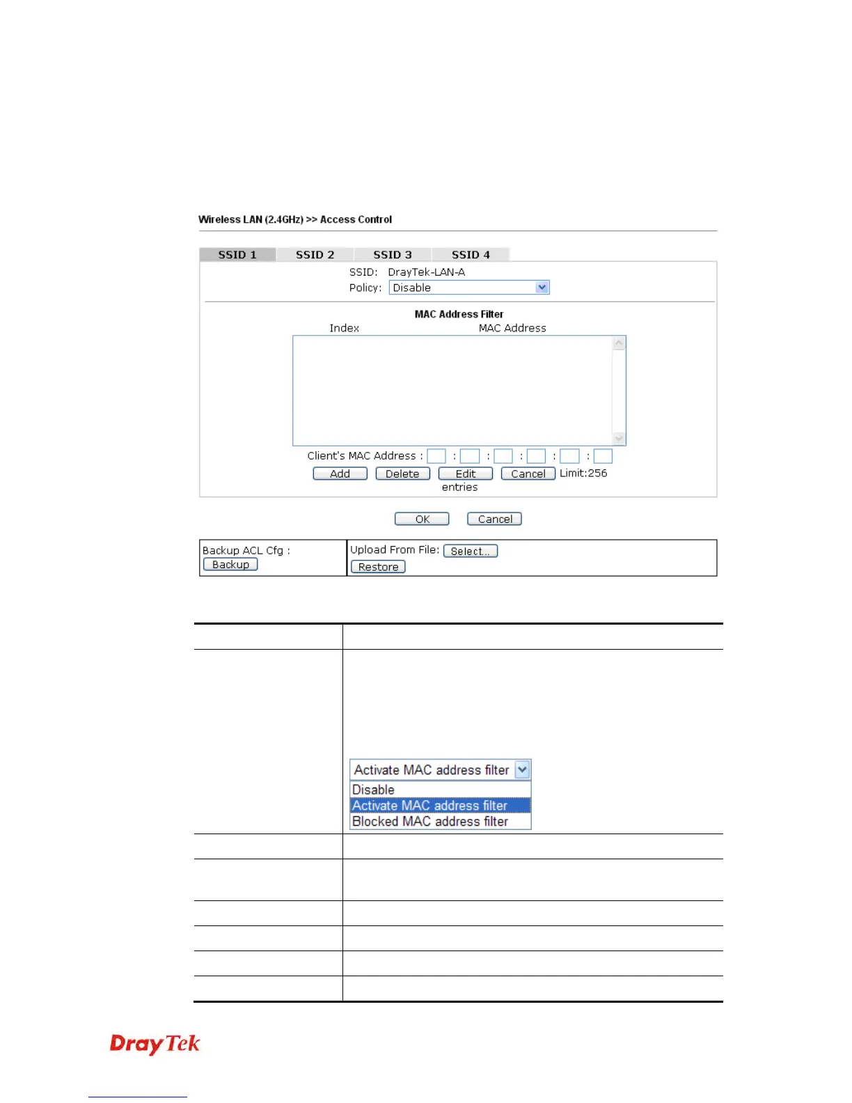 valid MAC address that has been configured can access the wireless LAN interface. By