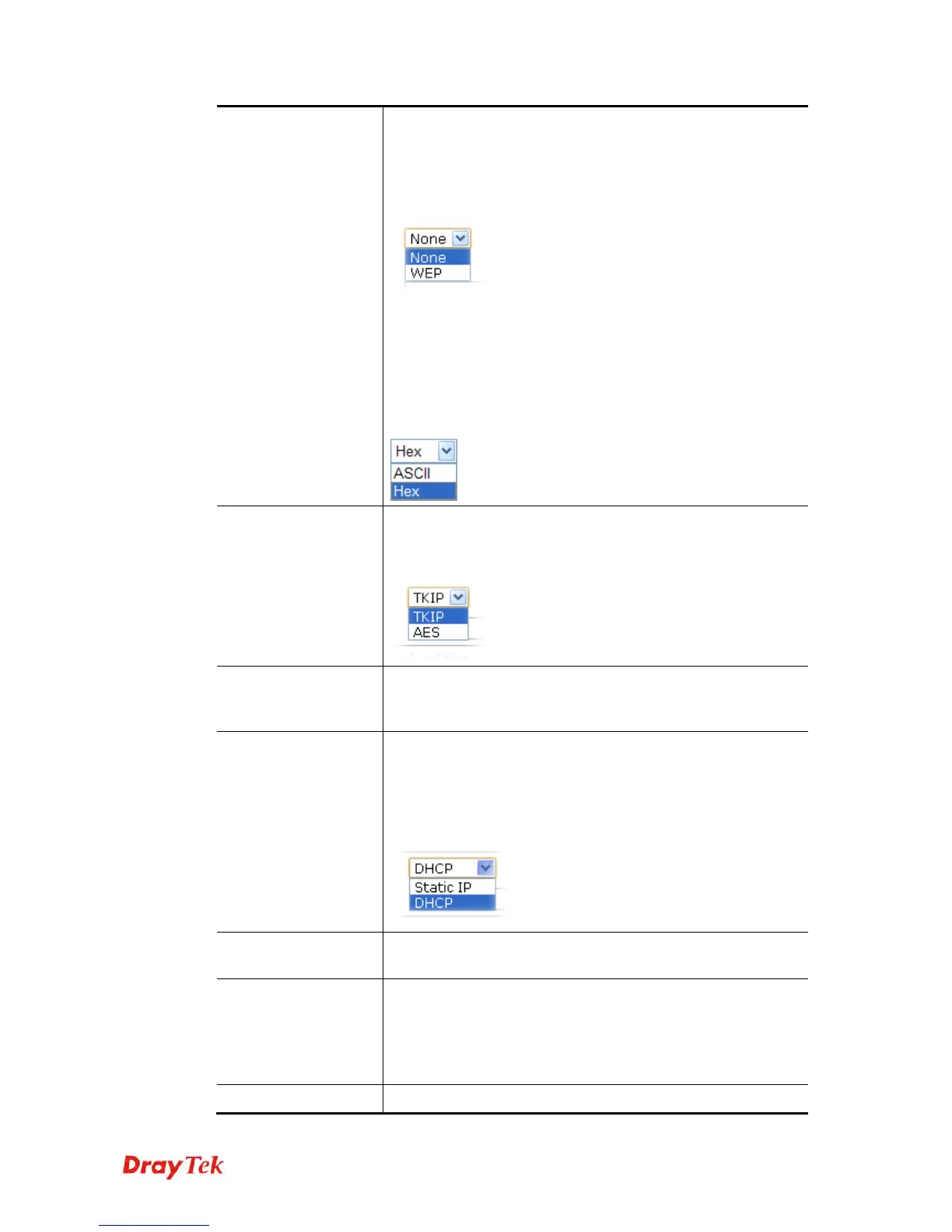 can be selected at a time. The format of WEP Key is restricted