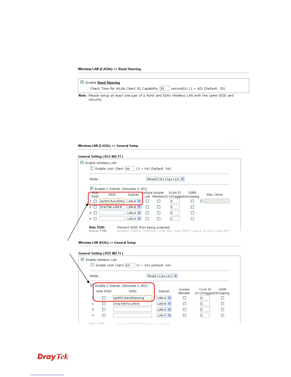 General Setup. Configure SSID as ap900-BandSteering for both pages. Click OK to