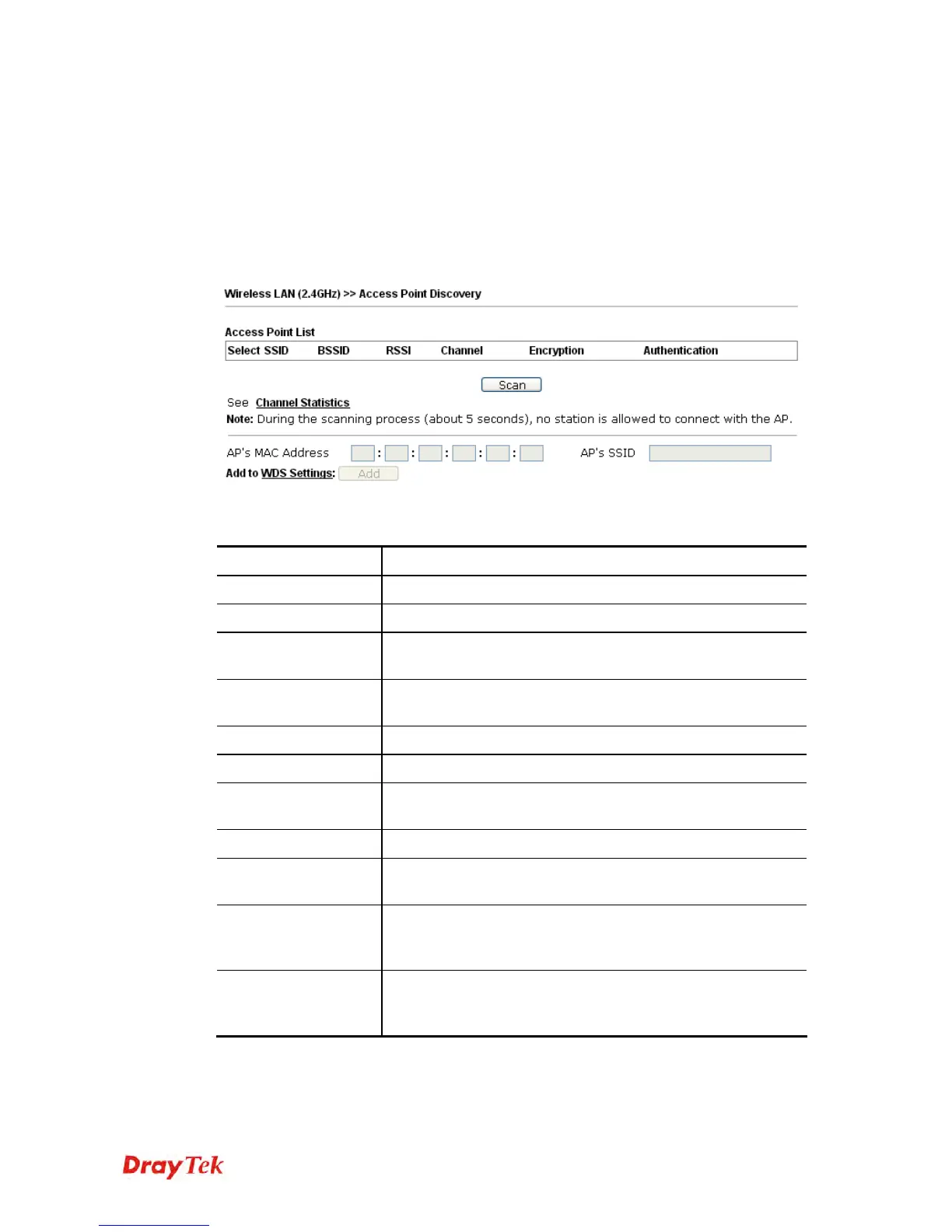 This page is used to scan the existence of the APs on the wireless LAN. Yet, only the AP