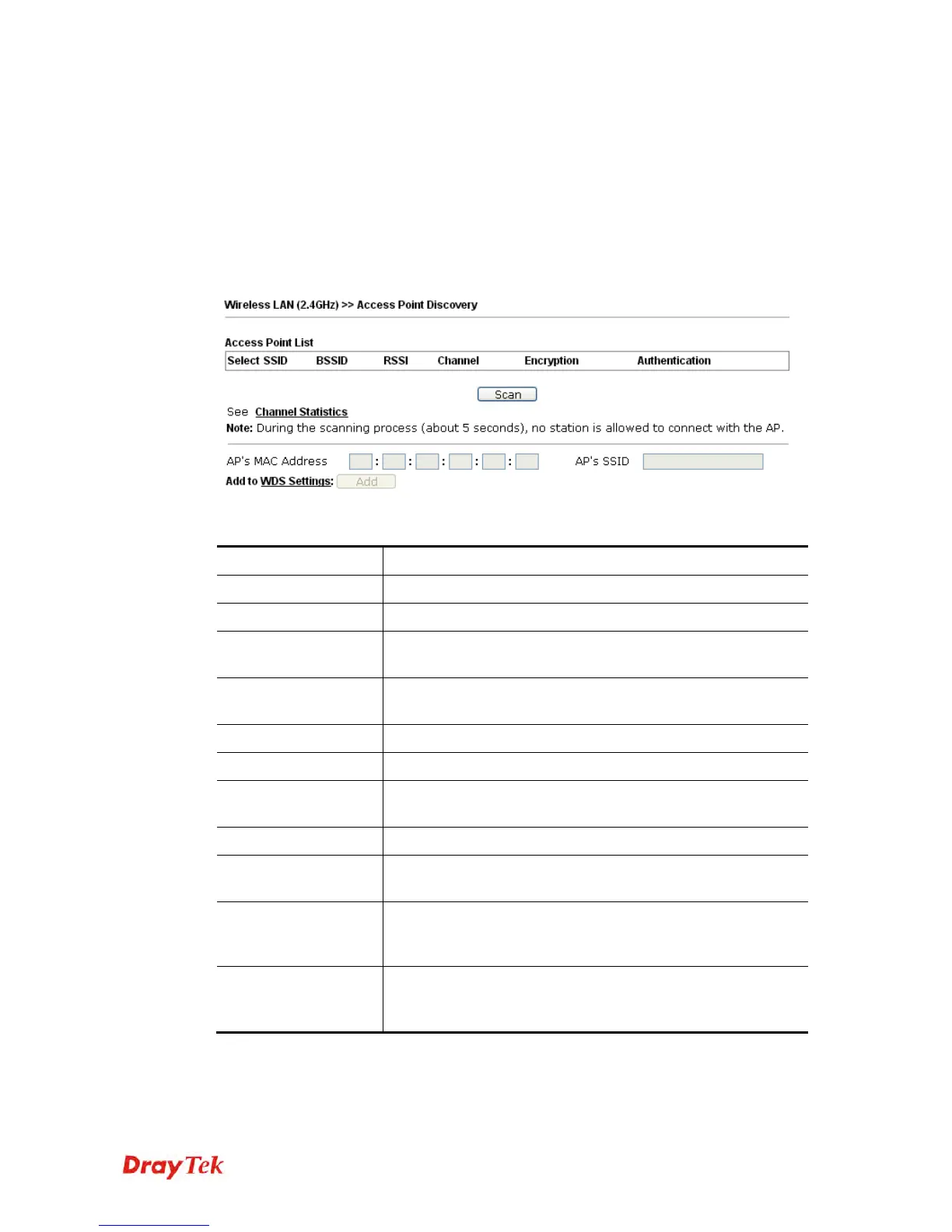 This page is used to scan the existence of the APs on the wireless LAN. Yet, only the AP