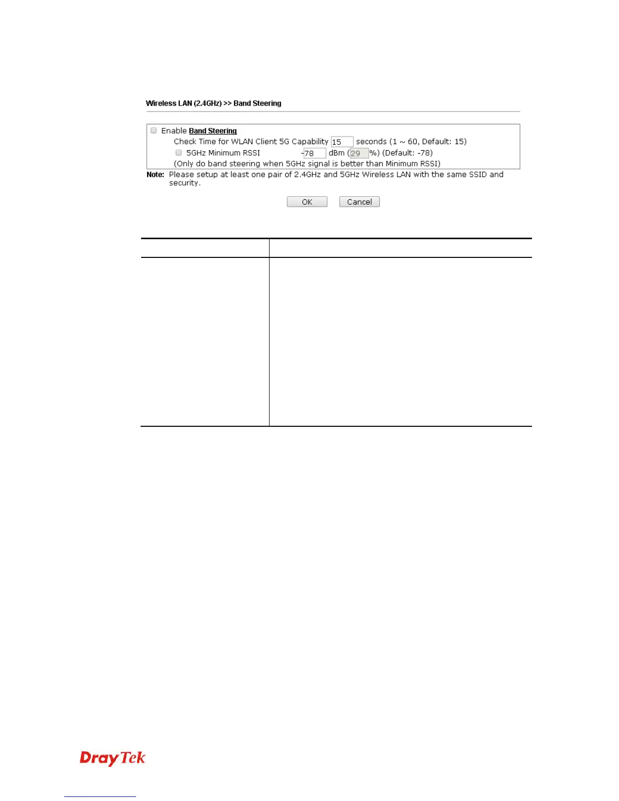 Open Wireless LAN (2.4GHz)>>Band Steering to get the following web page: