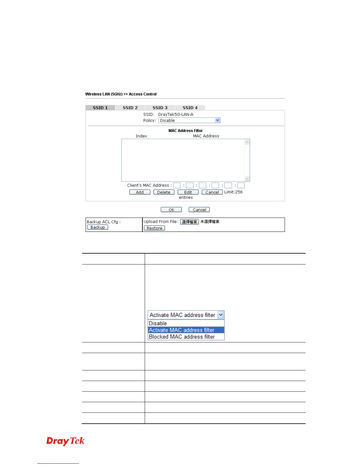 For additional security of wireless access, the Access Control facility allows you to restrict