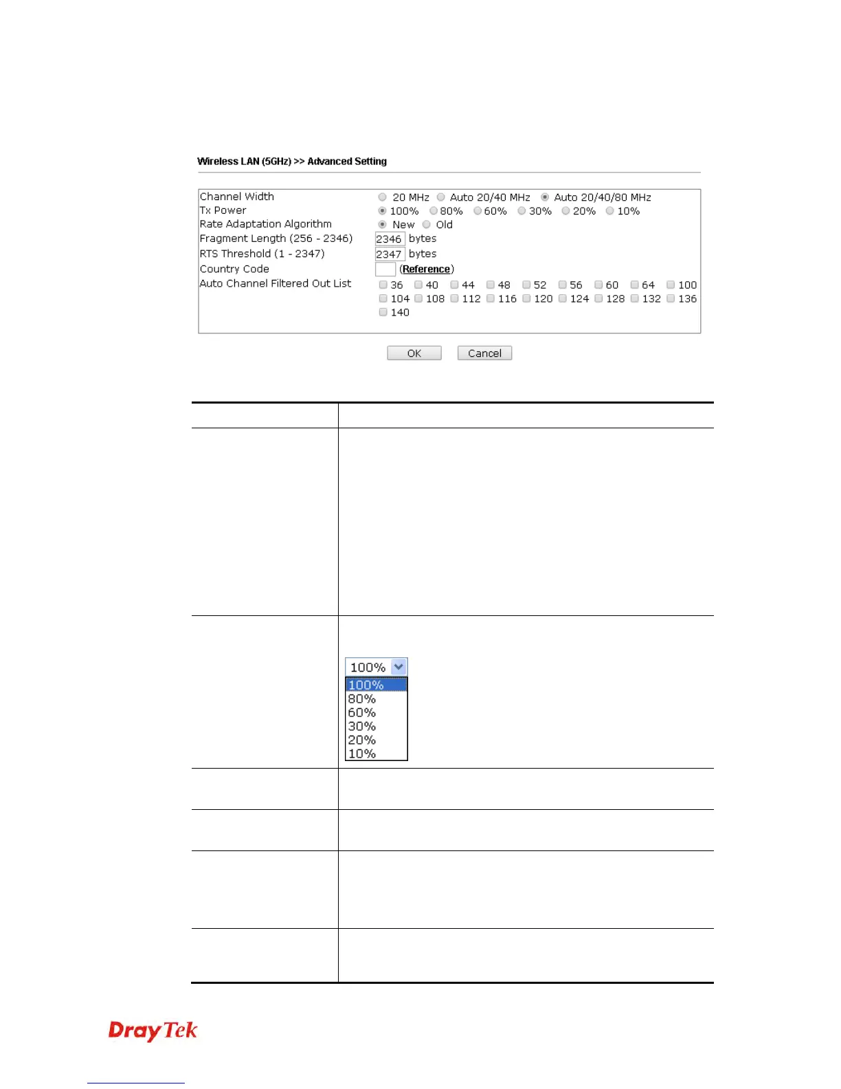 This page is to determine which algorithm will be selected for wireless transmission rate.