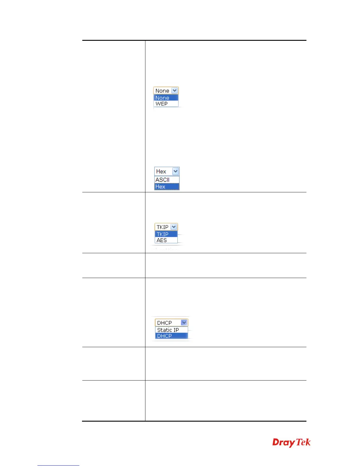 can be selected at a time. The format of WEP Key is restricted