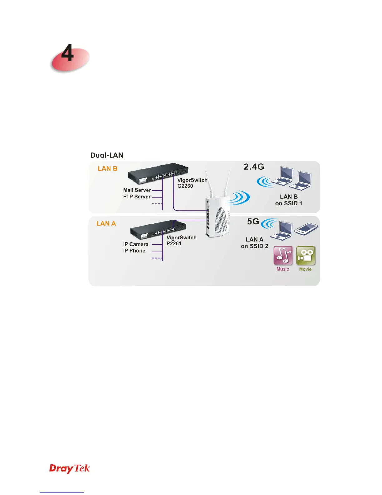 VigorAP 902 supports two network segments, LAN-A and LAN-B for different SSIDs. With