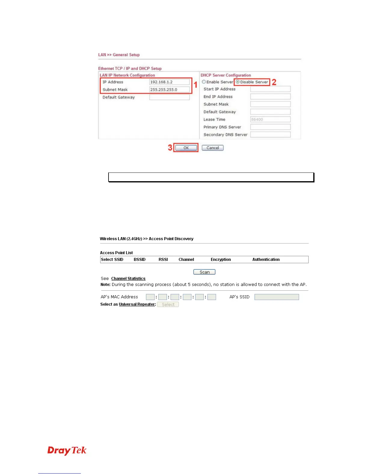 Note: The IP address of AP902 can’t be the same as it of Vigor2830n.