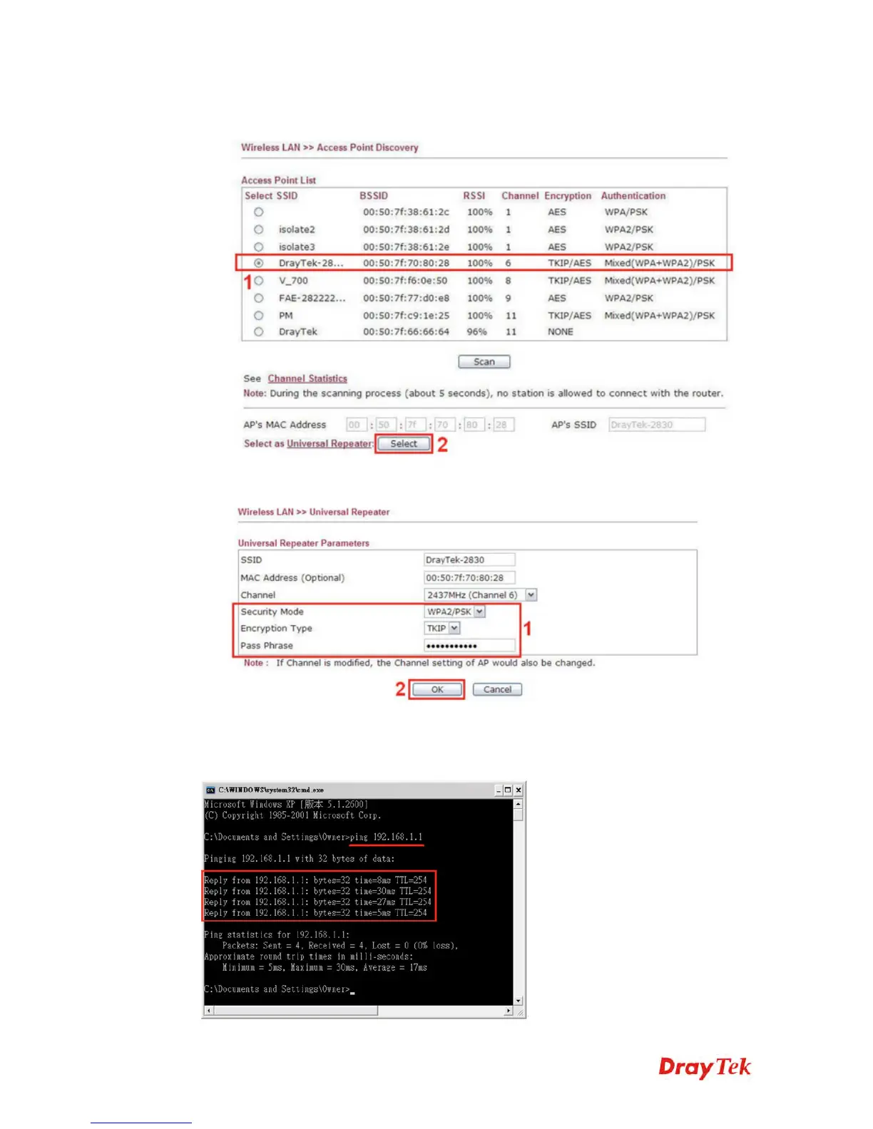 Vigor2830 to confirm the Universal Repeater connection has been established successfully.