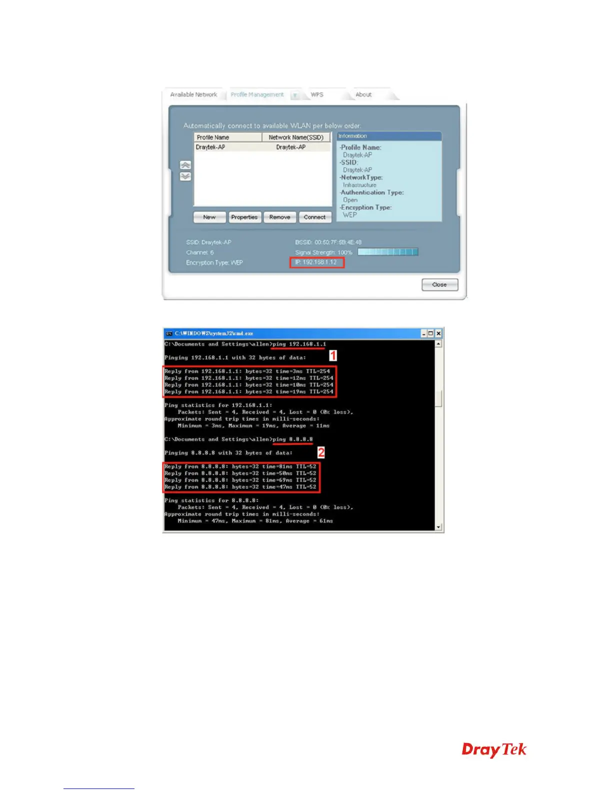 (1) Test the connection to Vigor2830n.