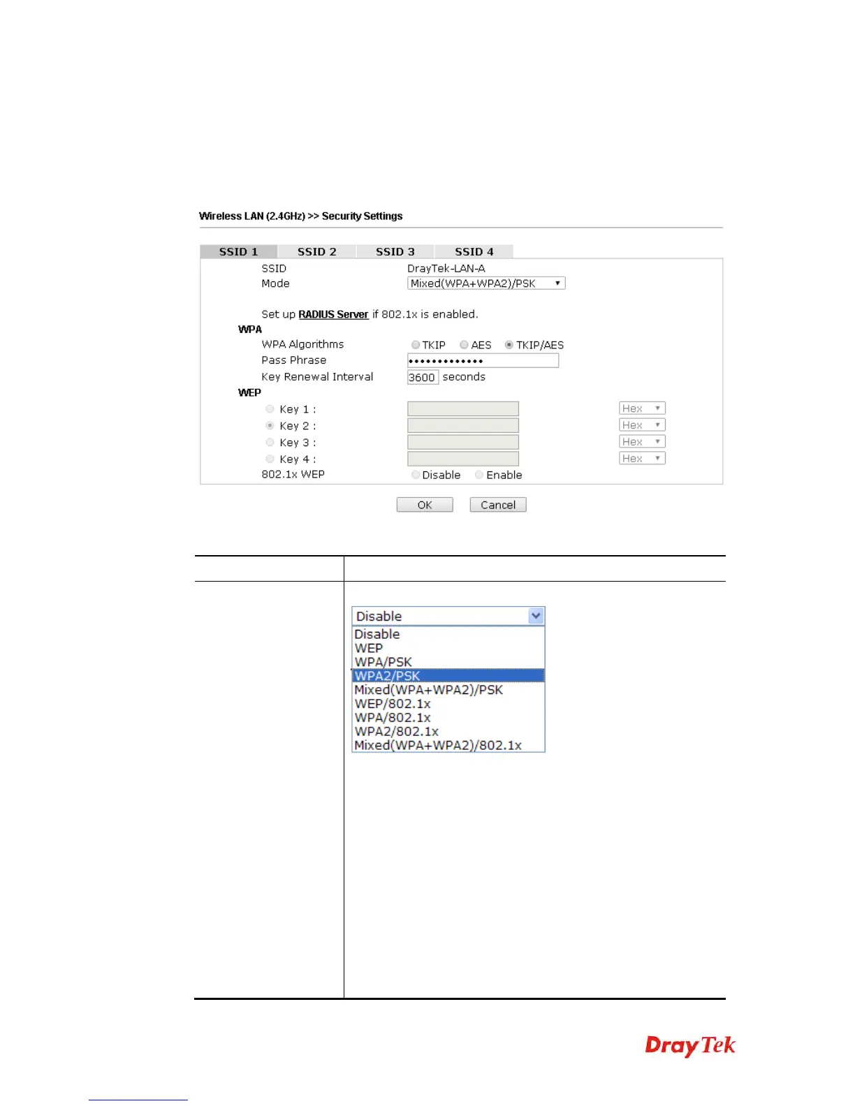 This page allows you to set security with different modes for SSID 1, 2, 3 and 4 respectively.