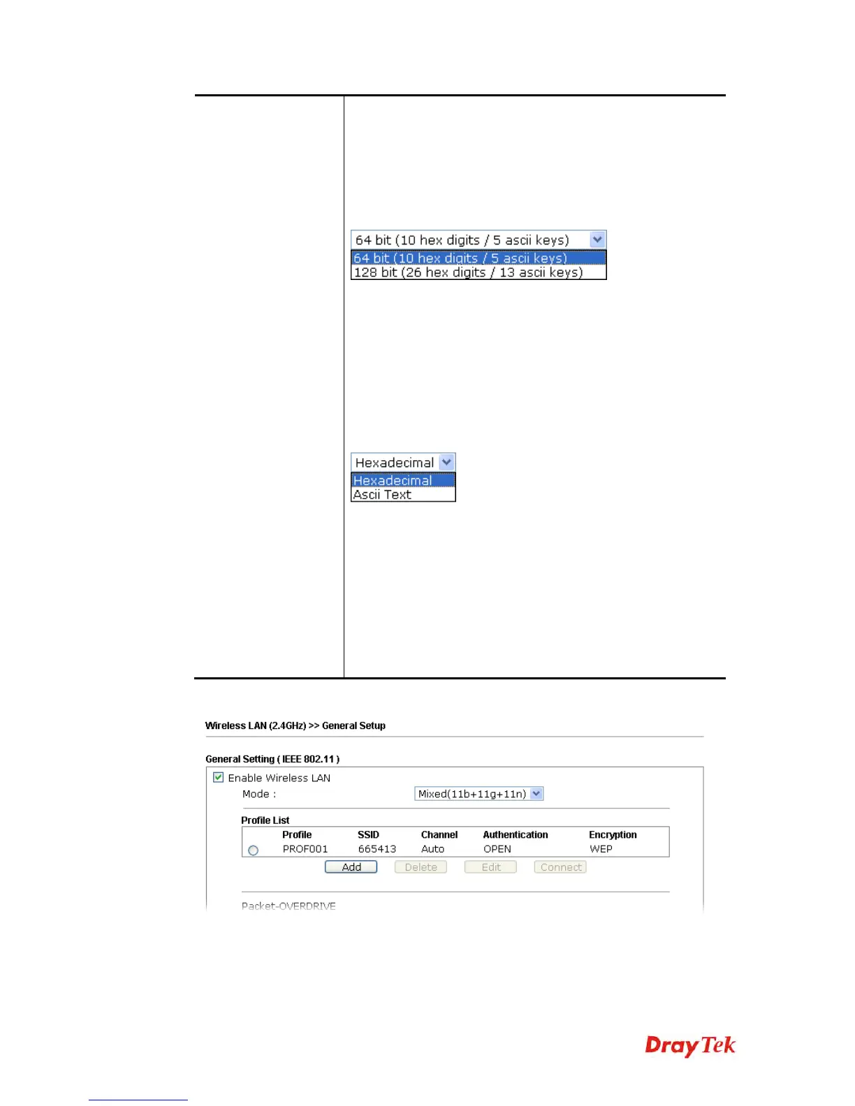 but only one key can be selected at a time. The format of WEP