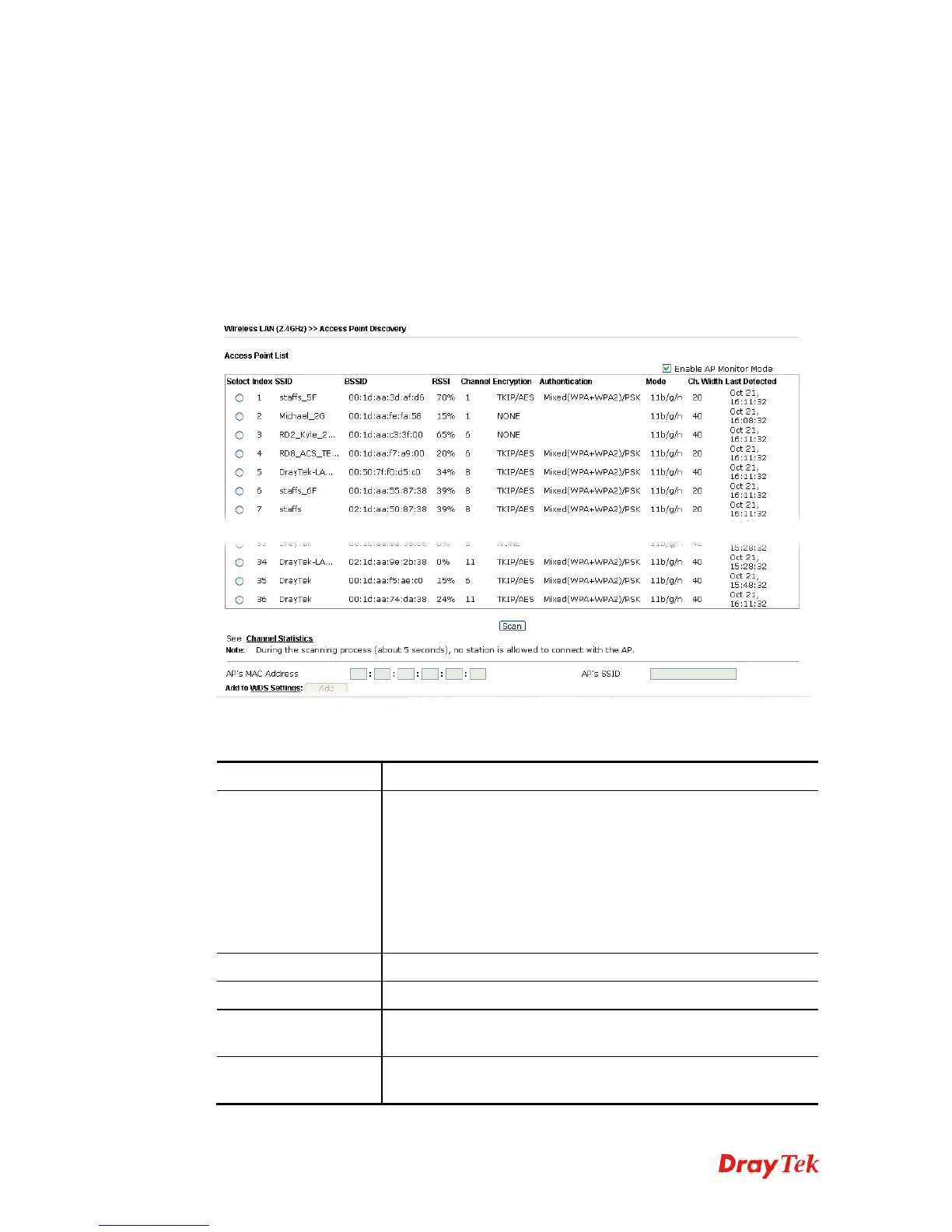 which is in the same channel of VigorAP 902 can be found. Please click Scan to discover all