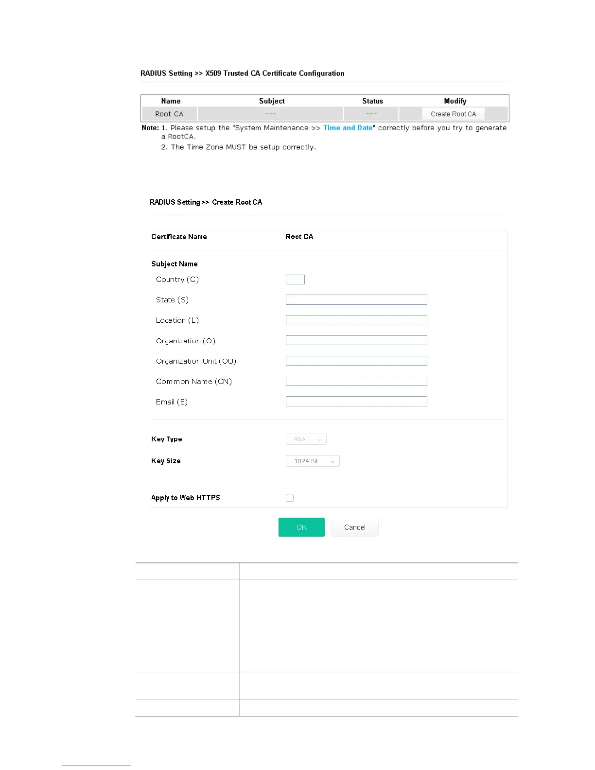 Click Create Root CA to open the following page. Type or choose all the information that the window