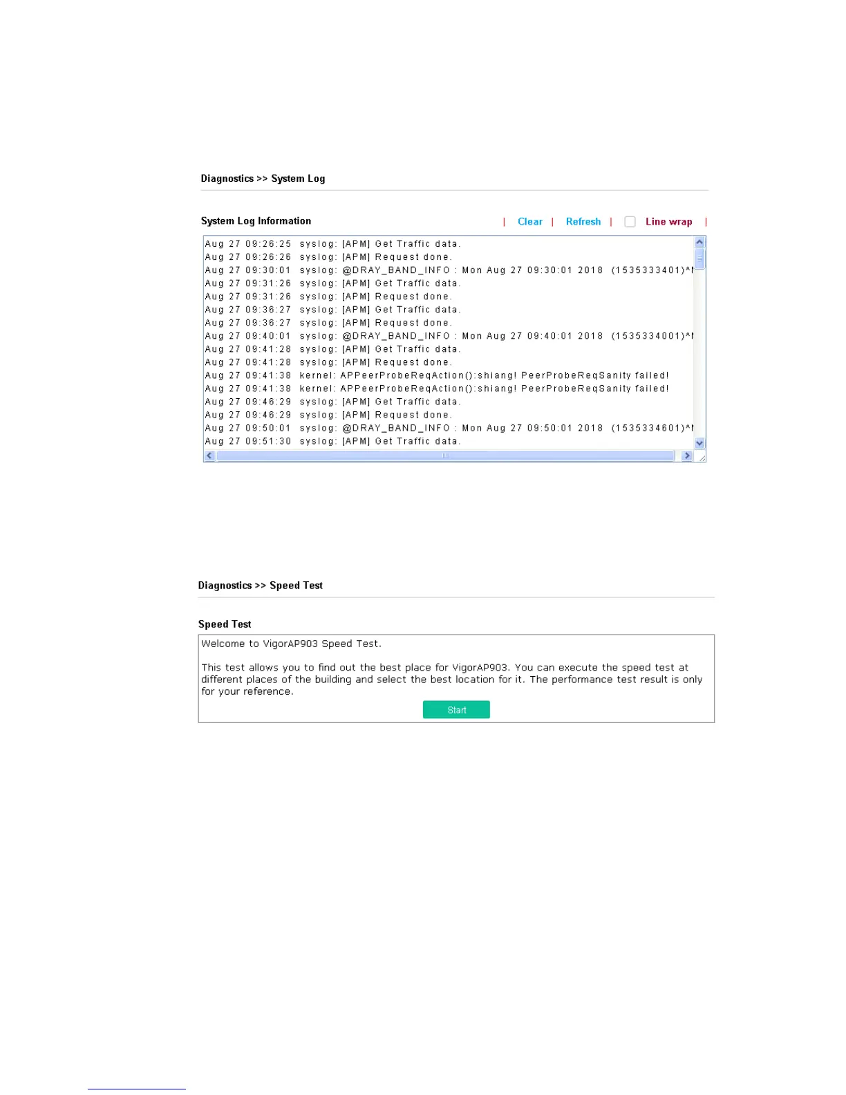 Draytek VigorAP 903 - V-1-1 System Log; V-1-2 Speed Test