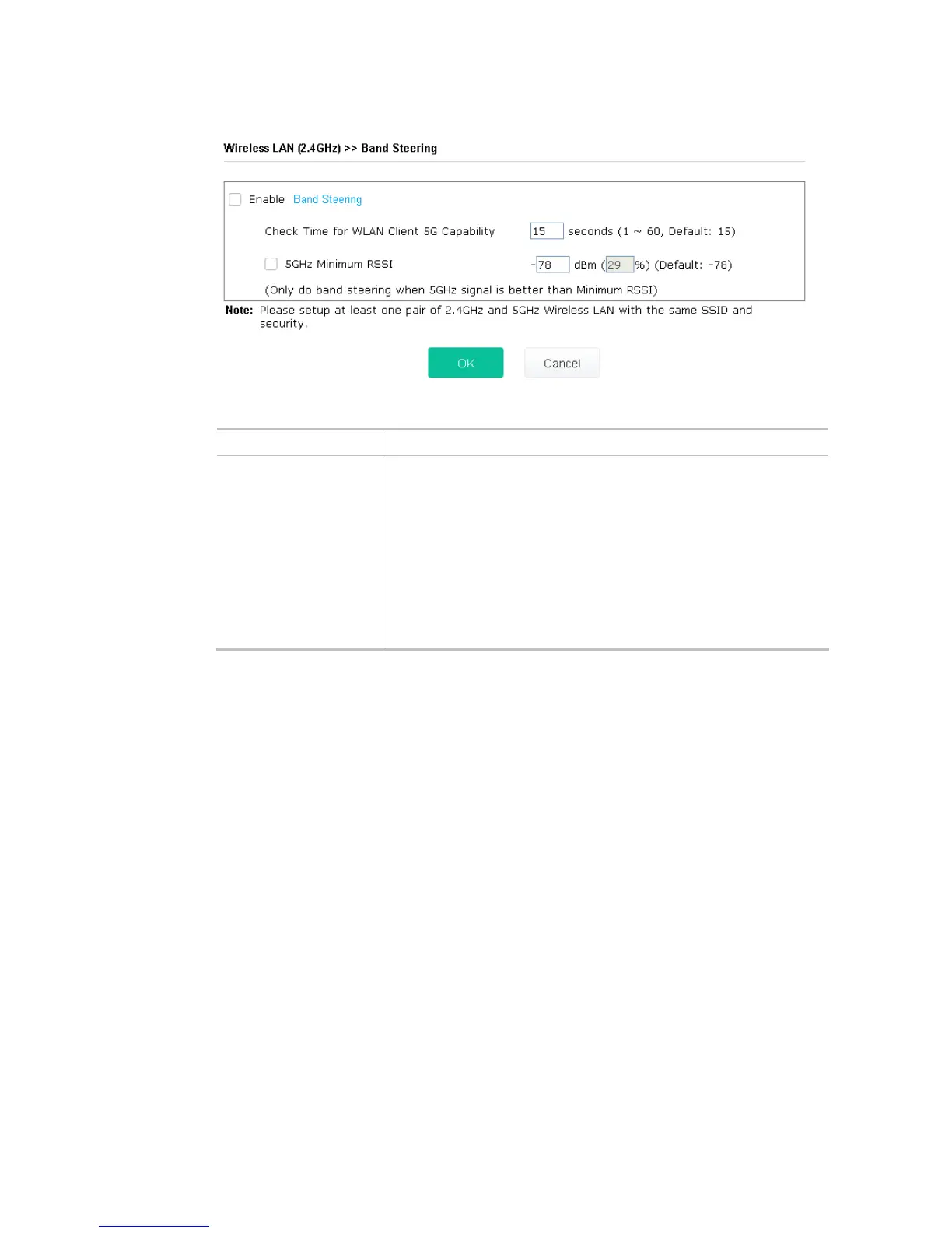 Open Wireless LAN (2.4GHz)>>Band Steering to get the following web page: