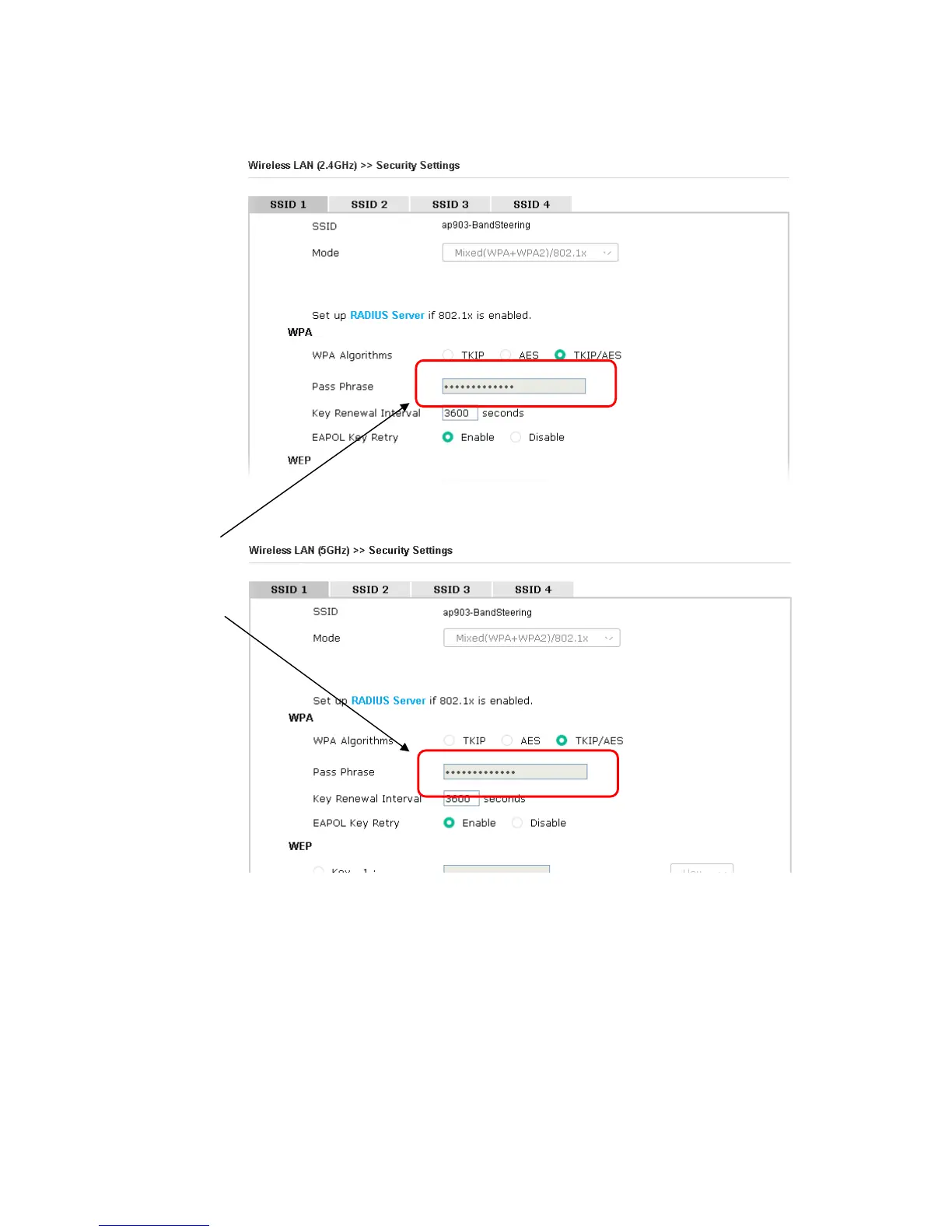 5. Open Wireless LAN (2.4GHz)>>Security and Wireless LAN (5GHz)>>Security. Configure