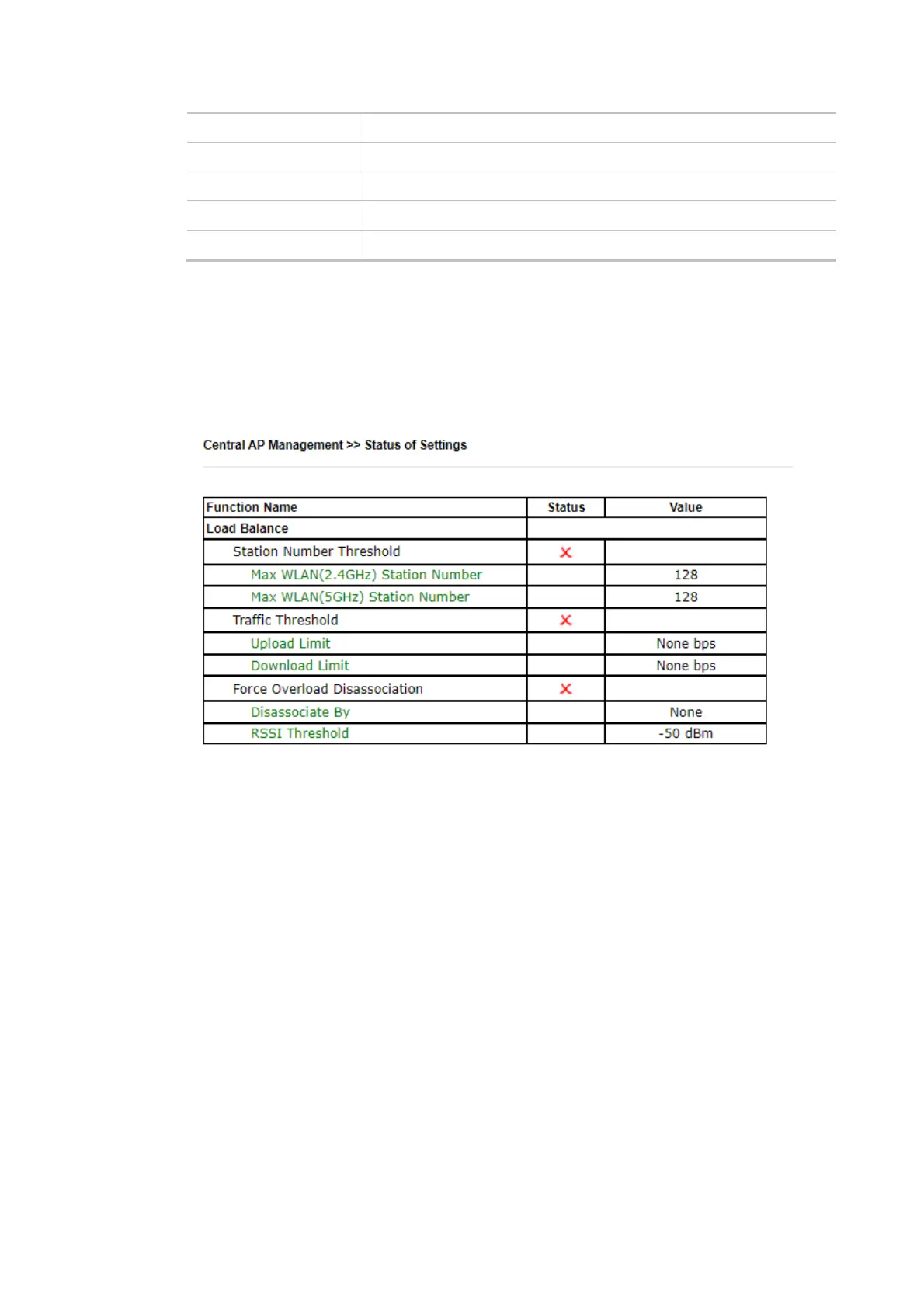 “X” means the function is not enabled or VigorAP 906 has not registered to any Vigor router yet.