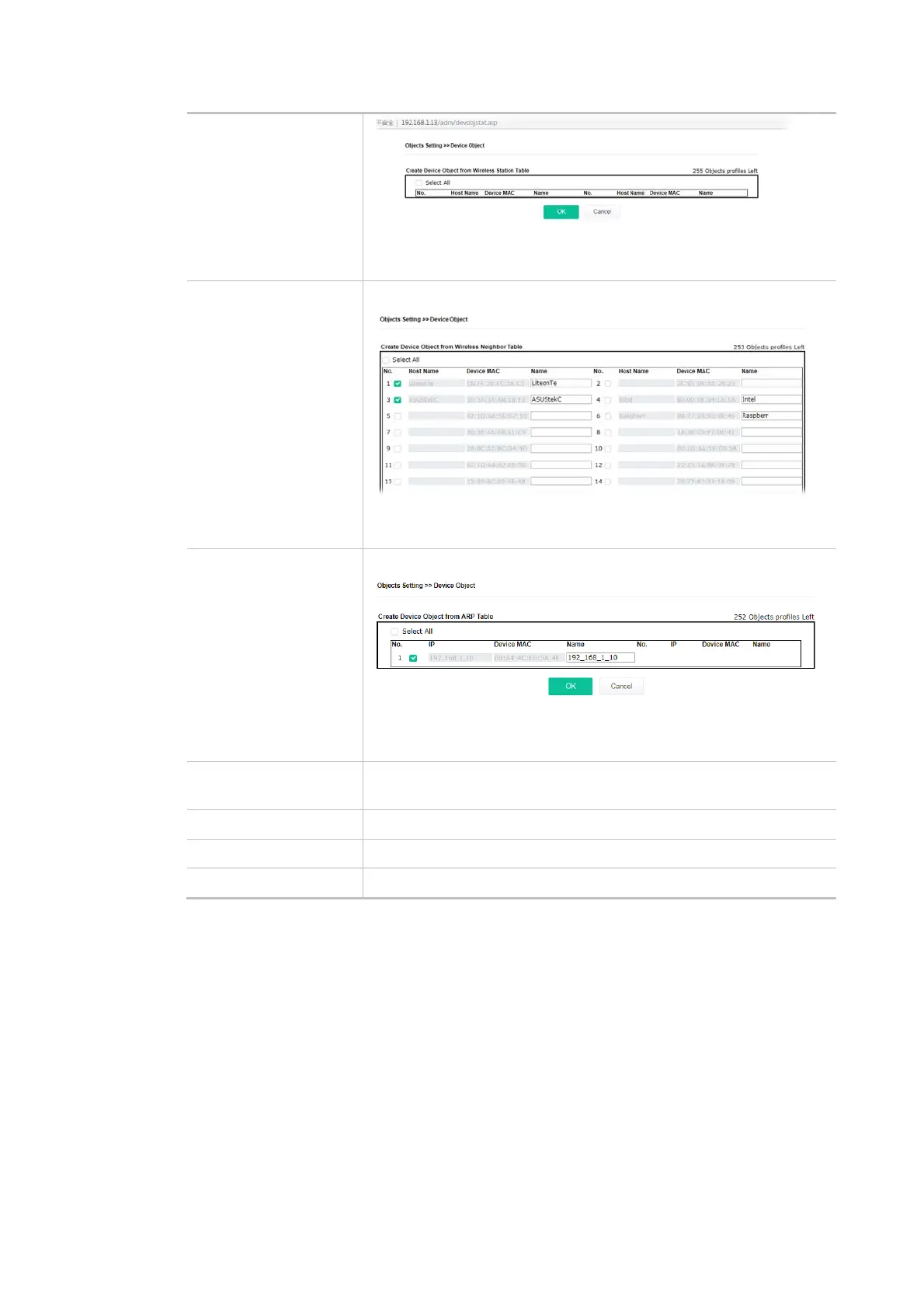 In addition to choosing from the wireless station table, neighbor table, or ARP table, you can click