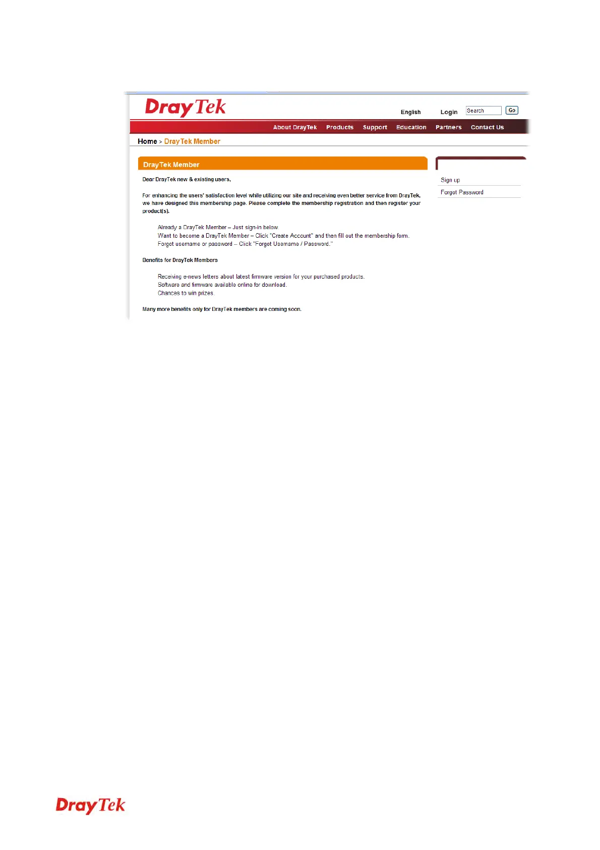 Click Support Area>>Product Registration, the following web page will be displayed.