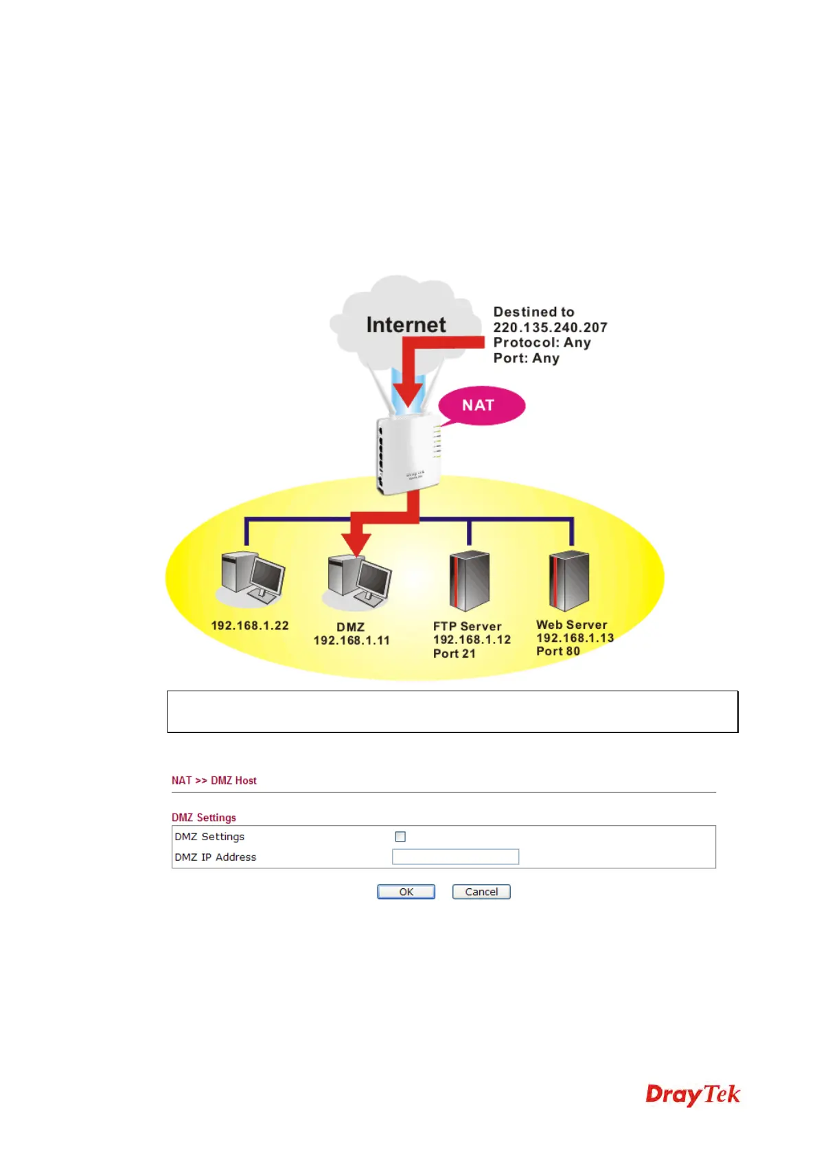 Note: The security properties of NAT are somewhat bypassed if you set up DMZ host. We