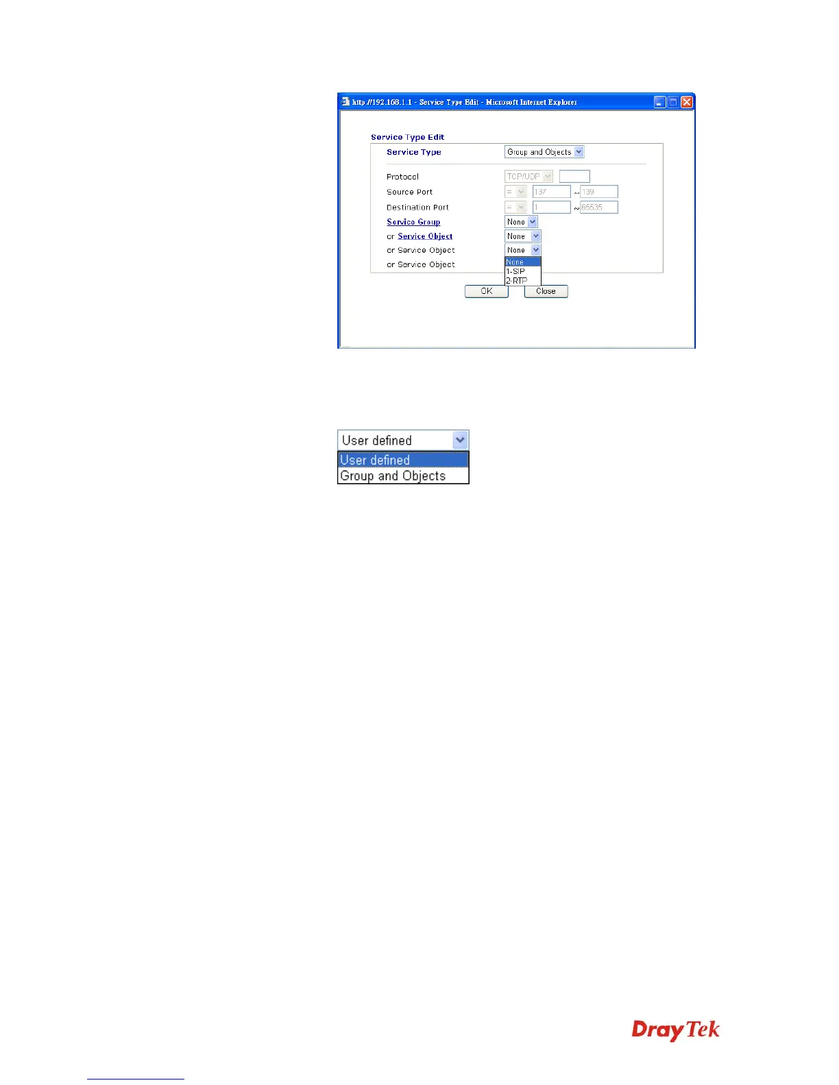 Service Group/Object - Use the drop down list to choose the one