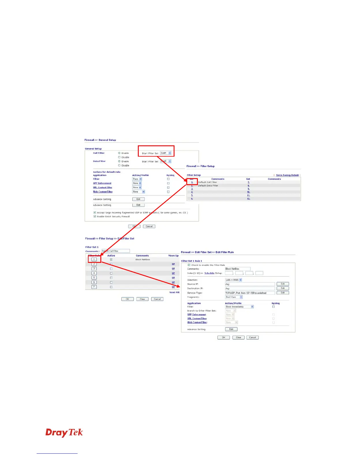 further defined. After that, in General Setup you may specify one set for call filter and one