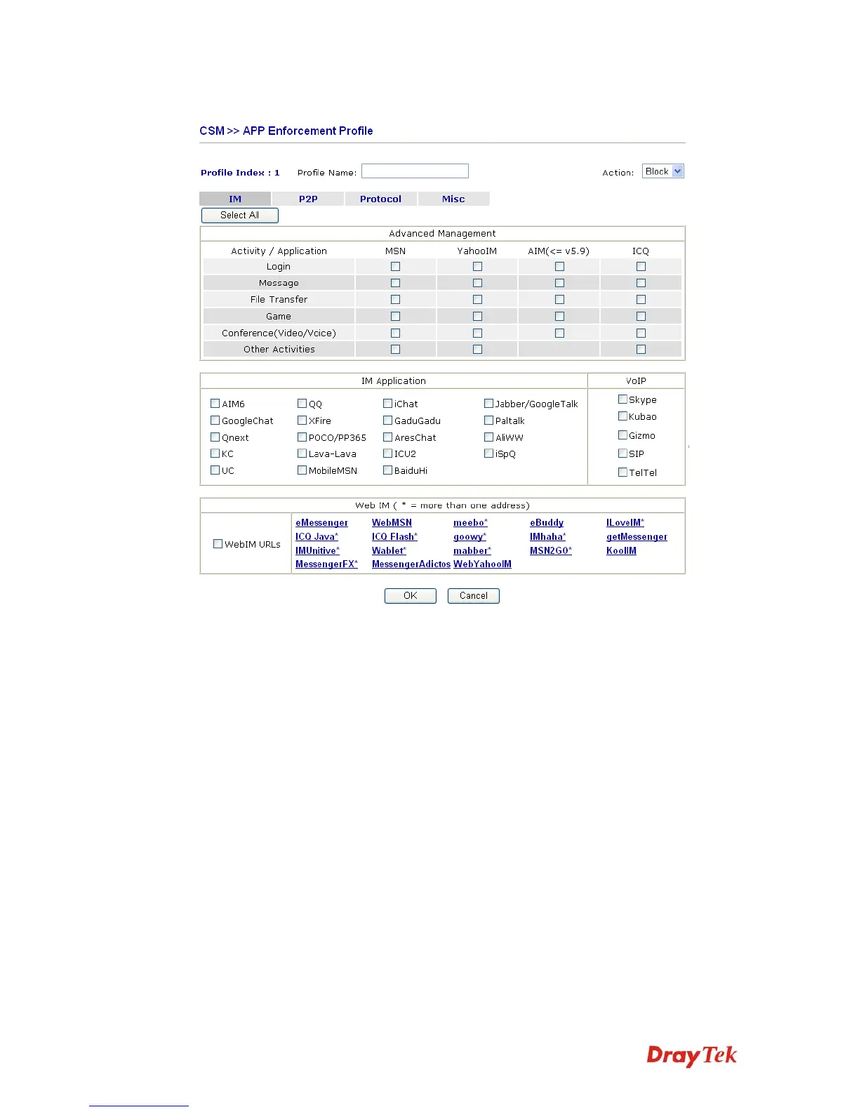 The profiles configured here can be applied in the Firewall>>General Setup and