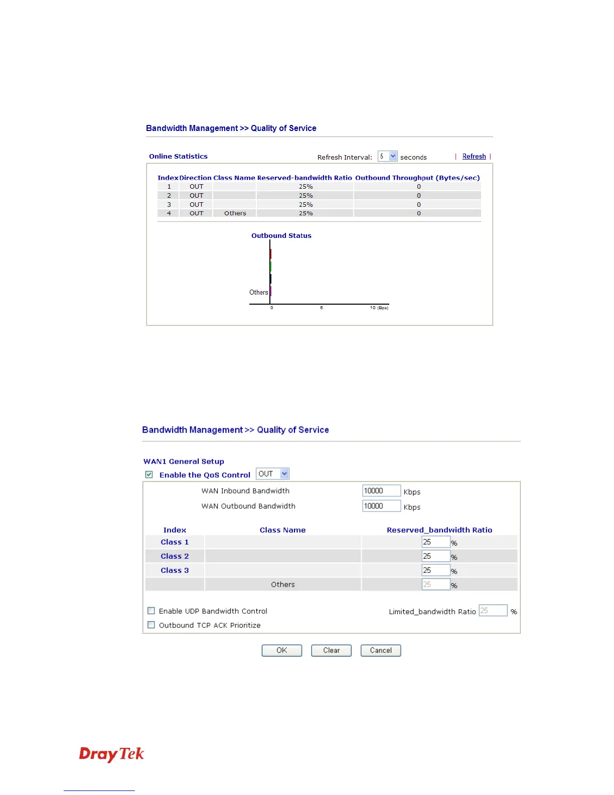 There are four queues allowed for QoS control. The first three (Class 1 to Class 3) class rules