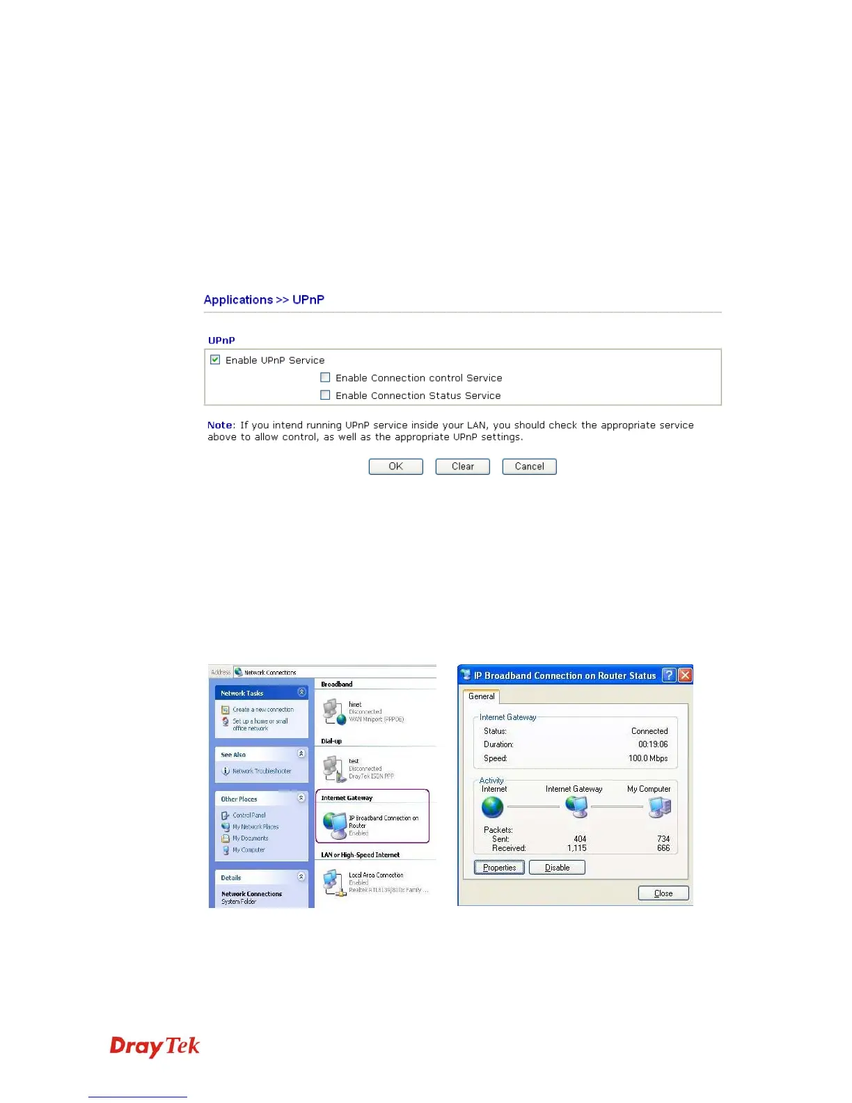 Enable UPNP Service Accordingly, you can enable either the Connection Control