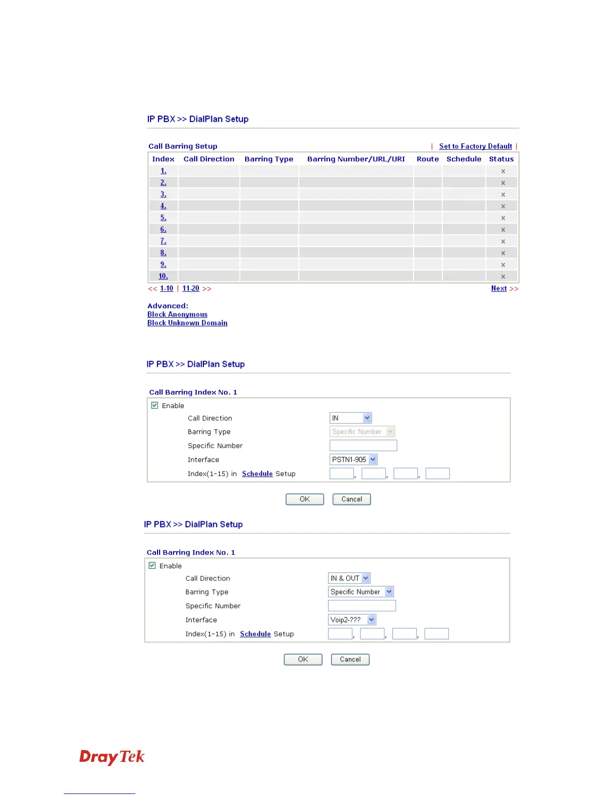 Click any index number to display the dial plan setup page.