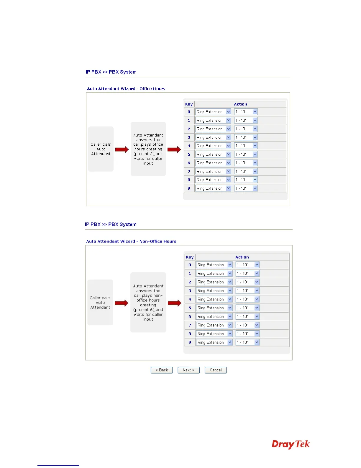 Click Next. The second page is configured for phone calls in non-office hours.