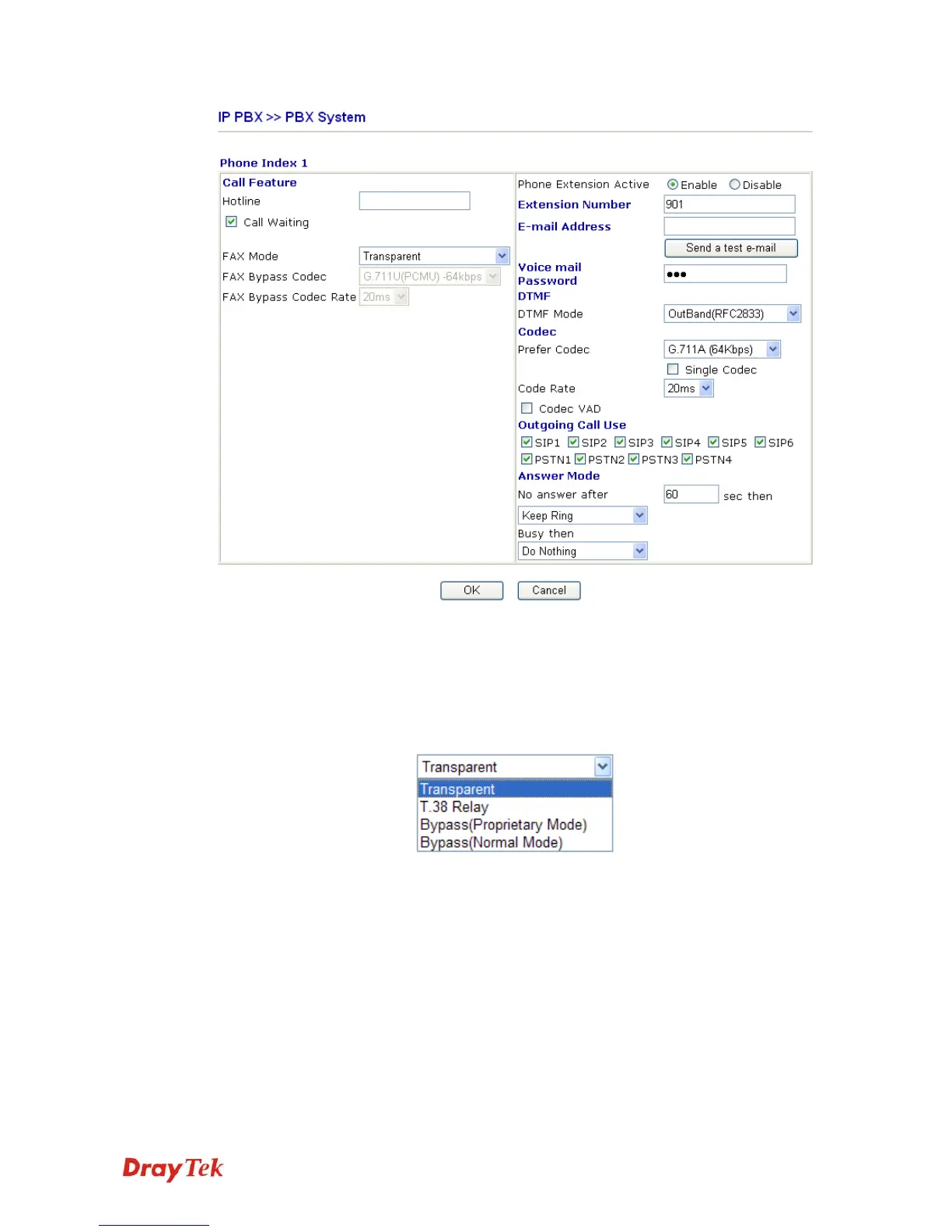 Transparent: FAX will be transmitted via voice channel; no