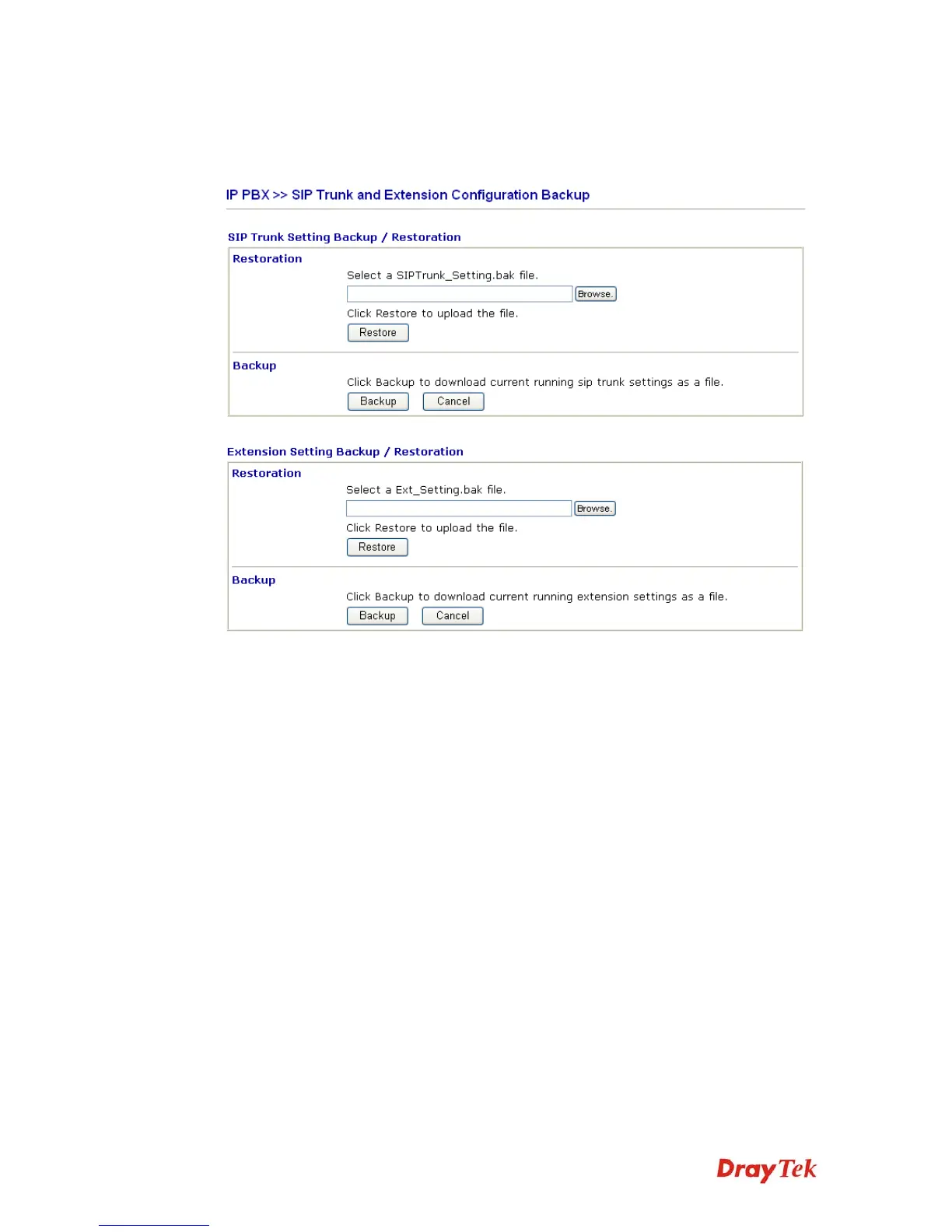 This page allows you to backup or restore SIP Trunk and Extension Configuration to the host