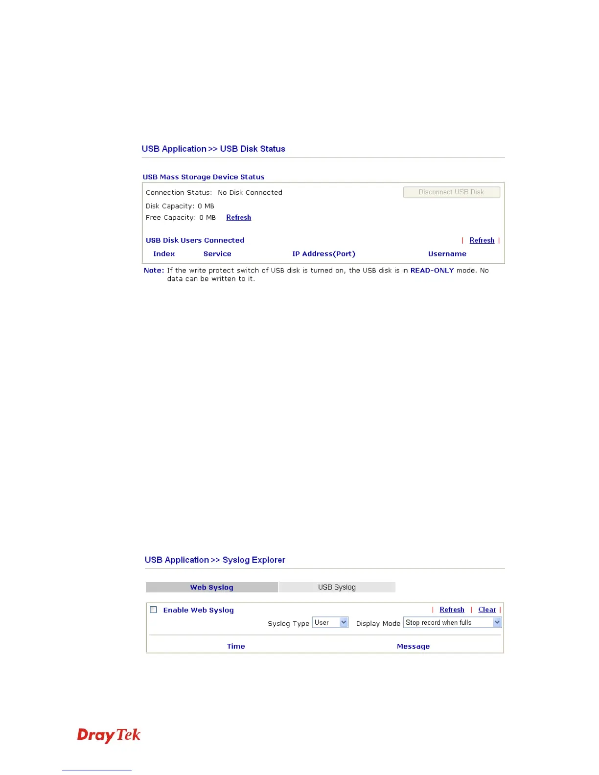 Connection Status If there is no USB storage disk connected to Vigor router, “No
