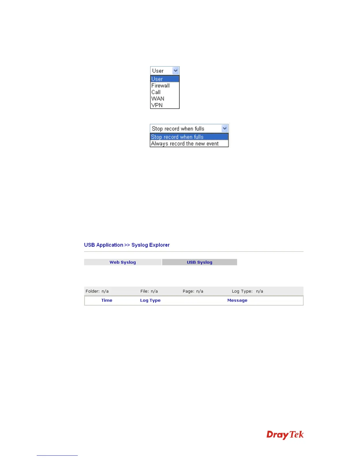 Stop record when fulls – when the capacity of syslog is full,