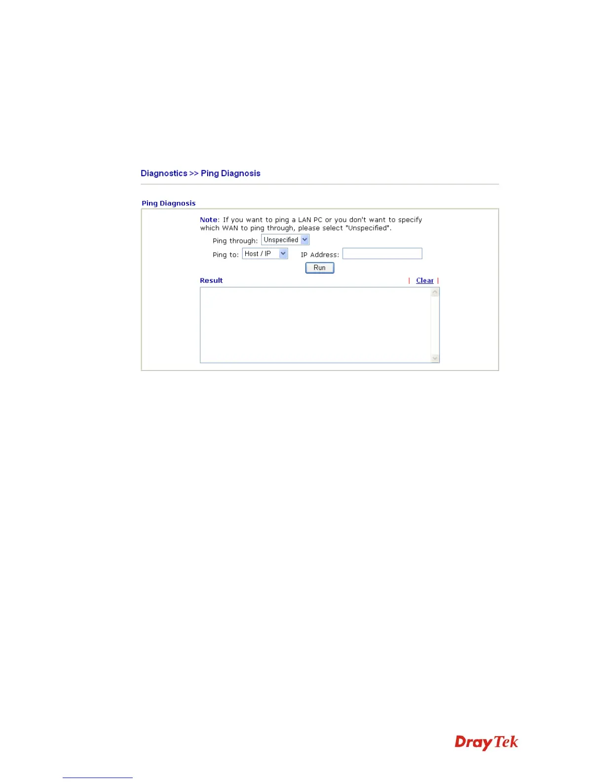 Click Diagnostics and click Ping Diagnosis to pen the web page.