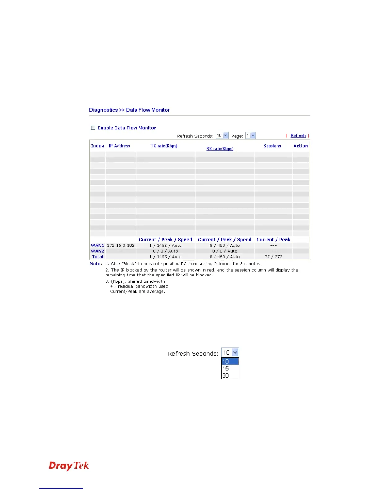 Click Diagnostics and click Data Flow Monitor to open the web page. You can click IP