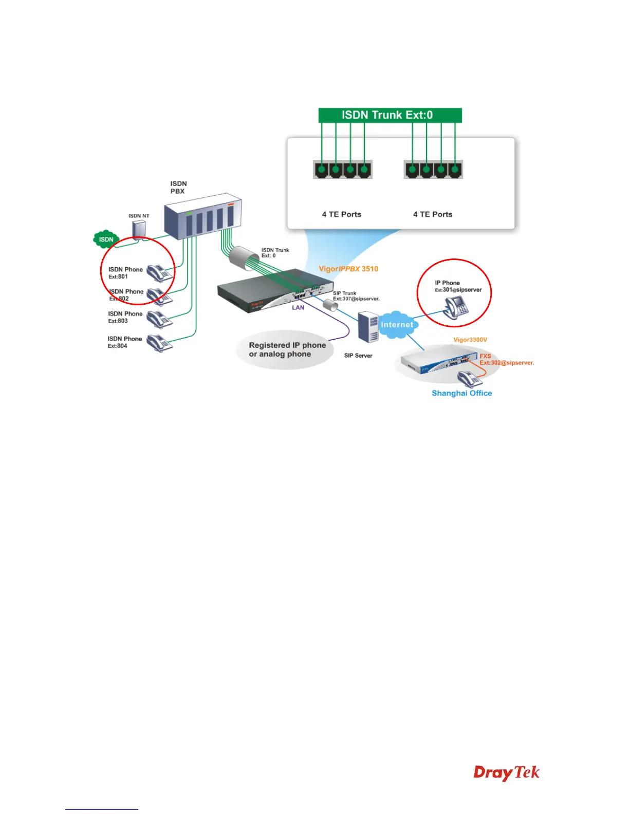 z The ISDN Phone with ext. No.801, 802, 803, and 804 are connected to ISDN PBX.